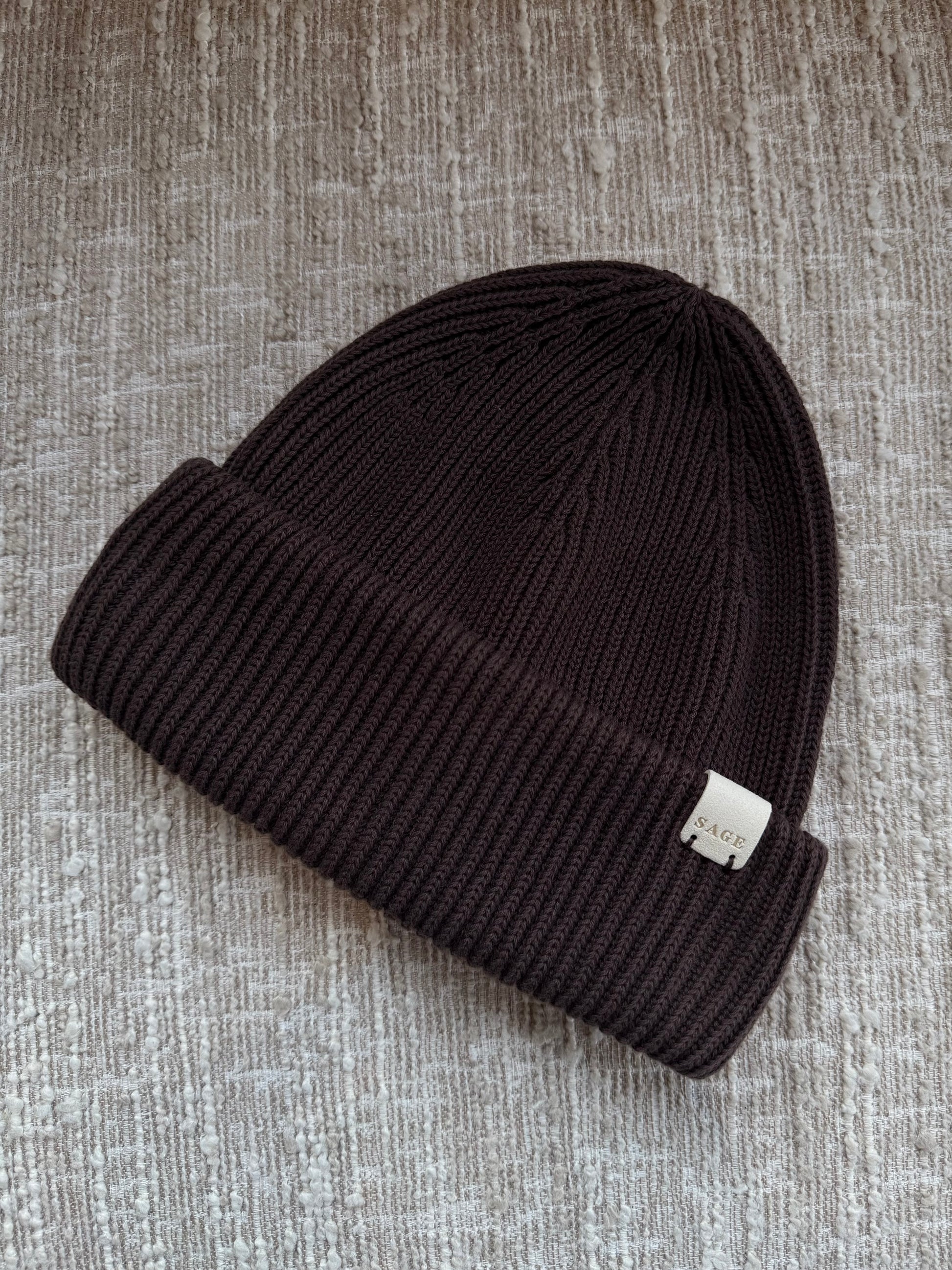 Hlýja húfan er prjónuð saman með Þyrni peysunum og koma þar með í sömu litum og þær peysur. Húfan er úr 100% bómul og kemur í tveimur litum, dökkbrúnum og hvítu.
