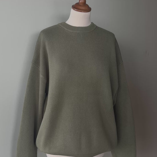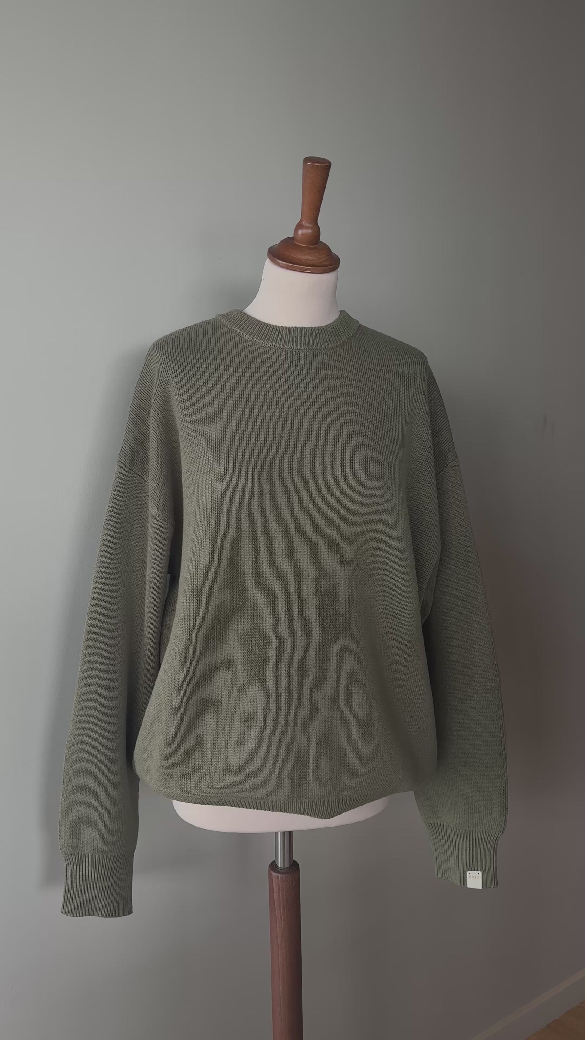 Þyrnir is an oversized crewneck sweater that is intended for all genders. It is knitted from 100% cotton and is exceptionally beautiful. The sweater comes in two colors: dark brown and white.