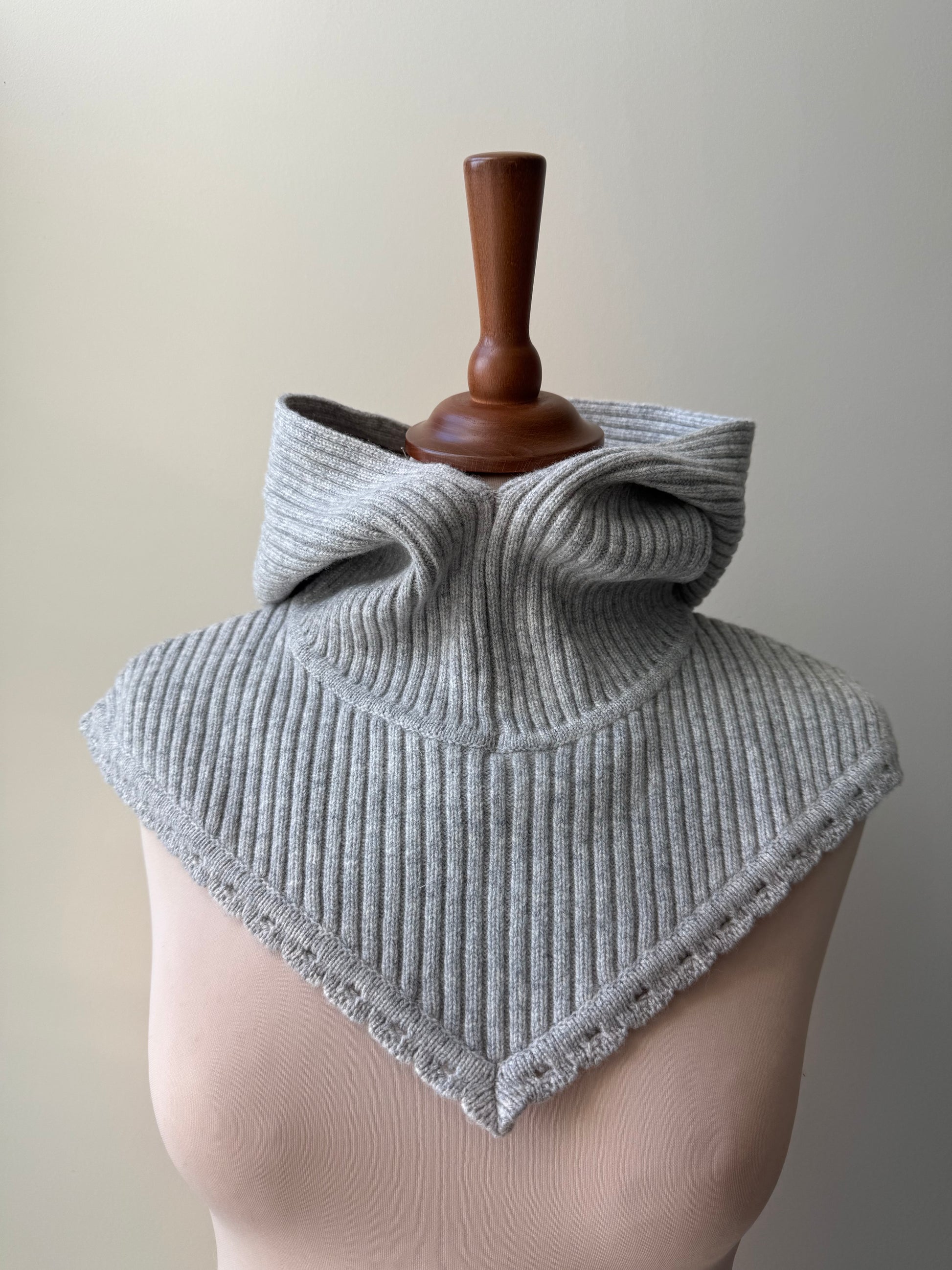 The Móey wool hood is knitted from 100% wool. It comes up high around the neck and lays comfortably over the chest and upper back, providing excellent warmth. The hood is rib-knitted with a decorative collar at the edges, giving it a beautifully unique look. It can be worn under a jacket with the hood peeking out, or as the top layer to let the collar stand out.