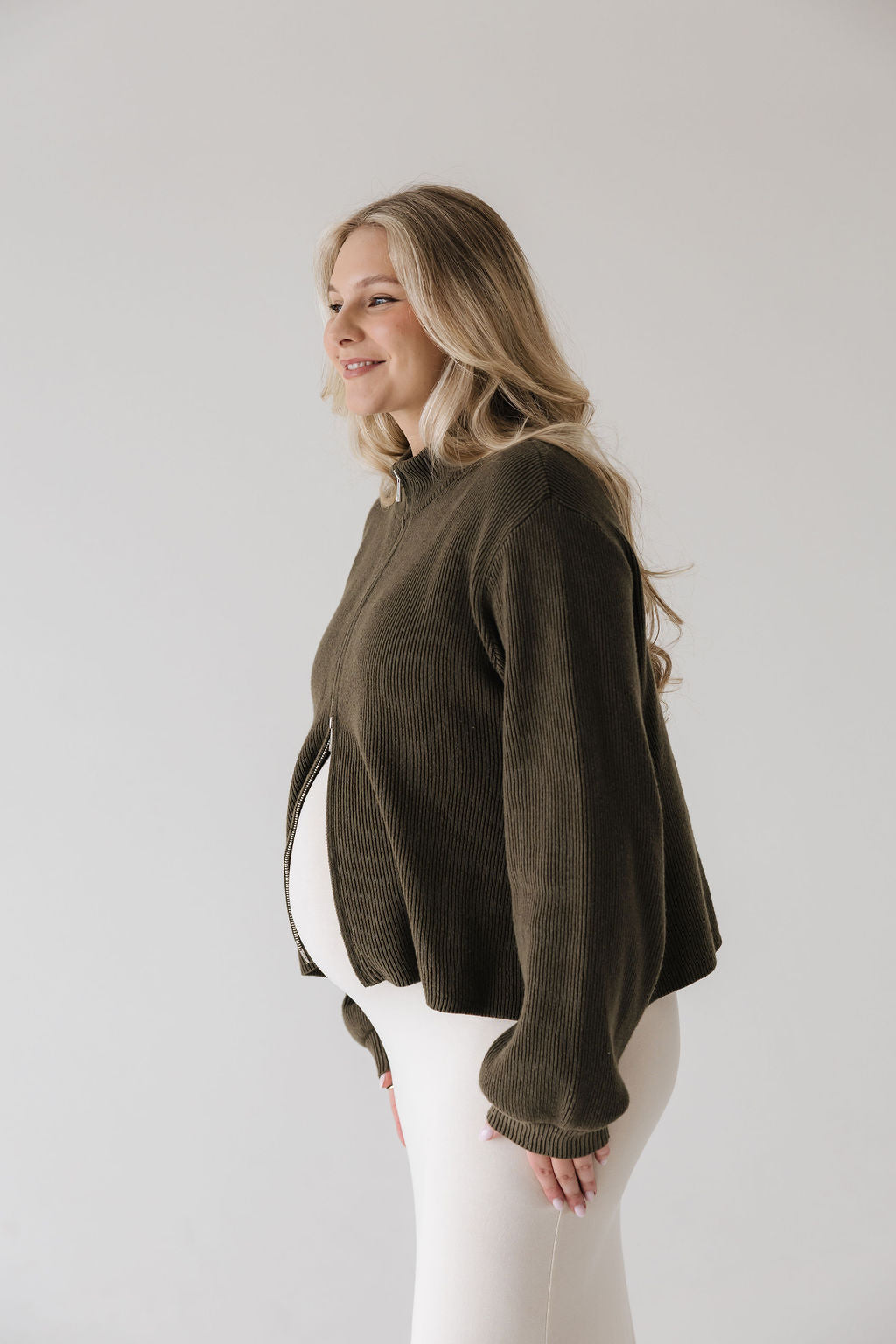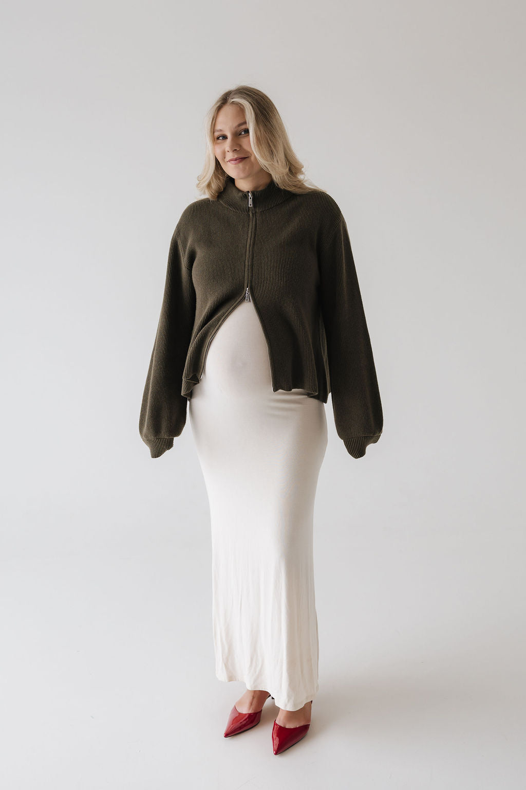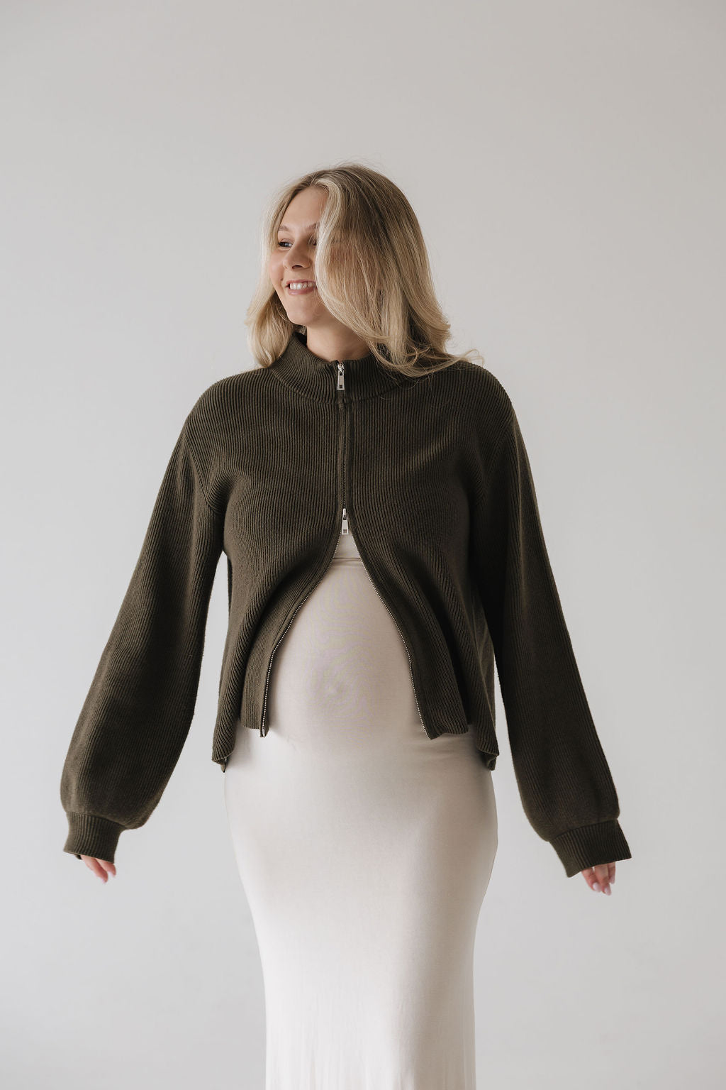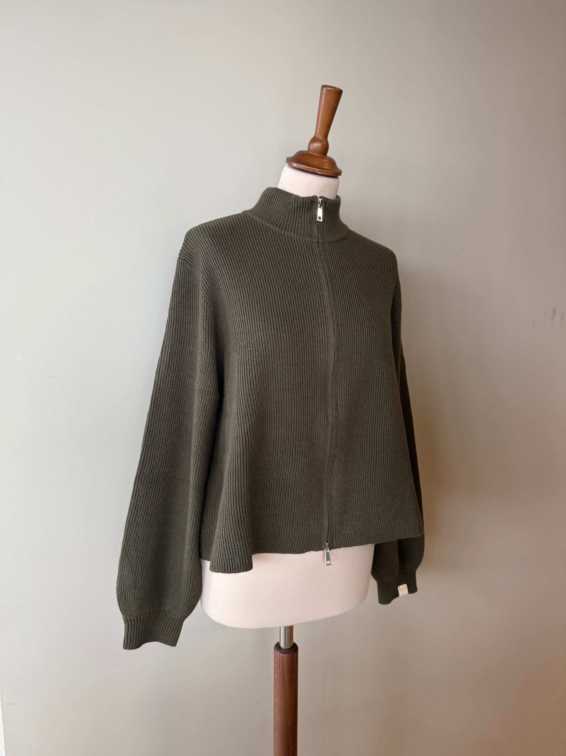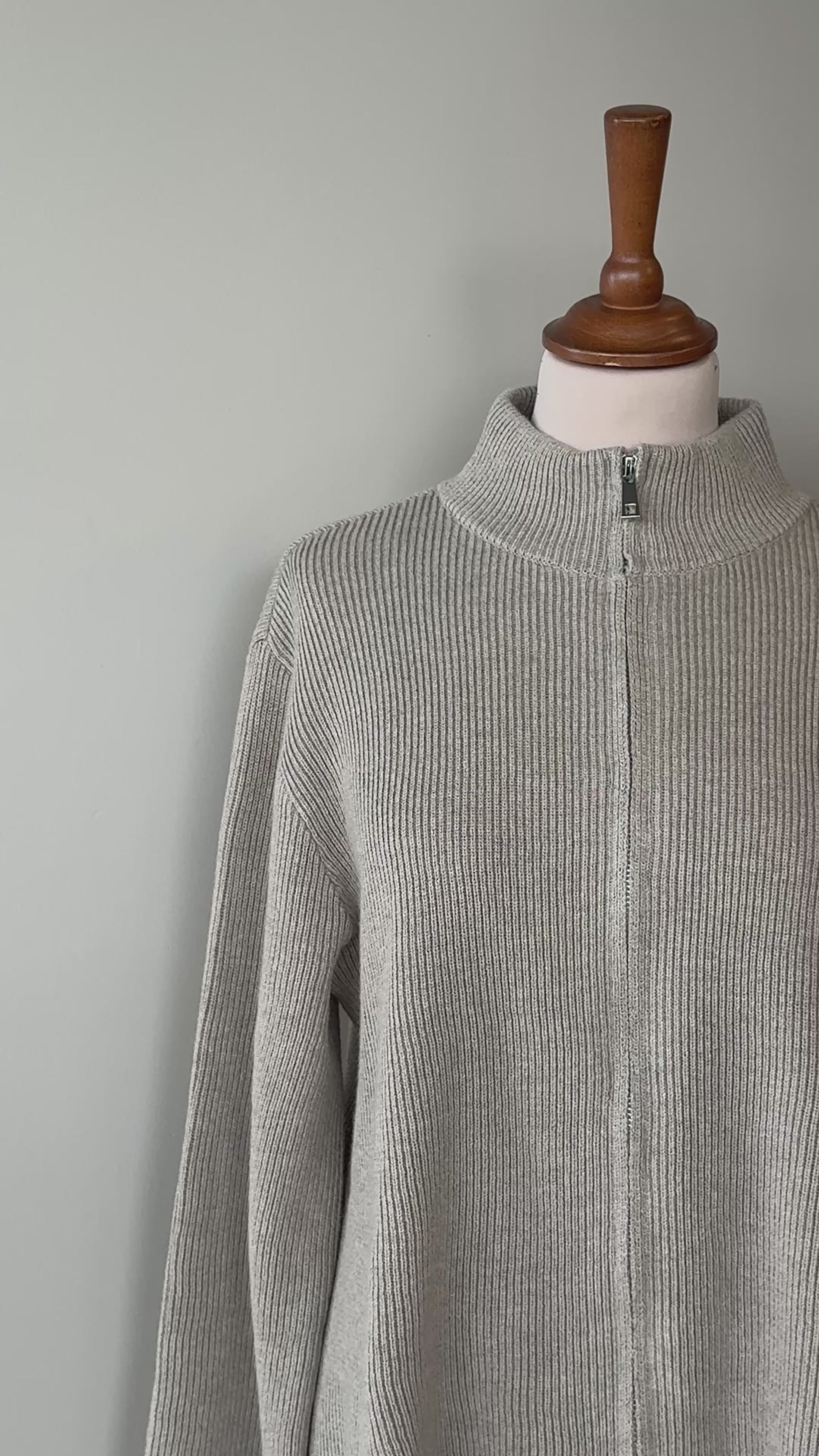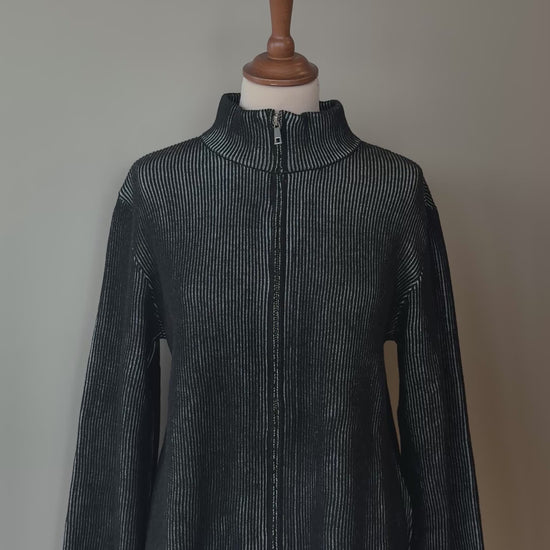 Myrkey er hin fullkomna oversized prjónapeysa sem hægt er að vera í á góðum notalegum stundum heimavið, í skólann og vinnuna. Peysan er rifflað prjónuð úr 80% bómull og 20% ull sem gerir hana létta og endingargóða, hún er með tvöföldum rennilás og kraga sem sem nær uppfyrir háls.