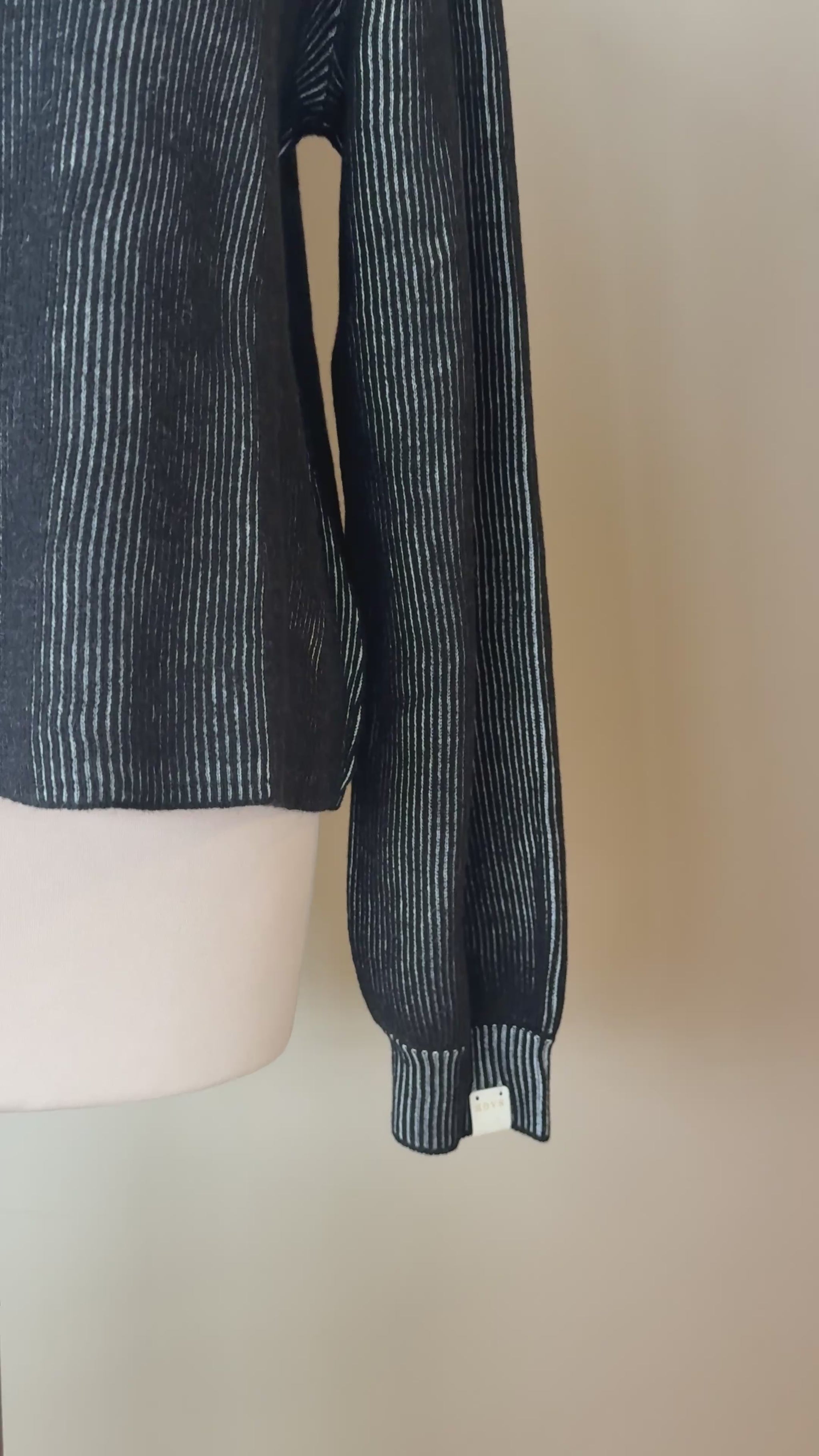 The garment is designed to fit multiple sizes, making it loose-fitting. The pattern and yarn give it a lightness that allows it to adapt beautifully to various sizes.
