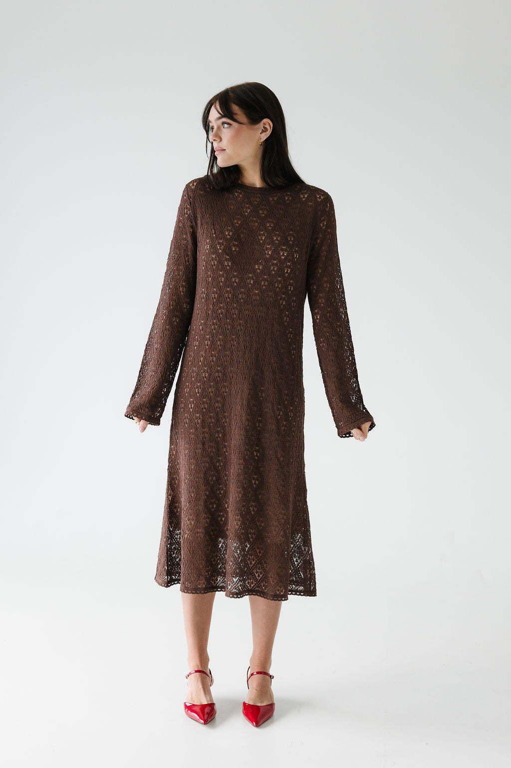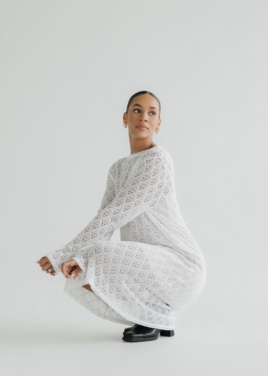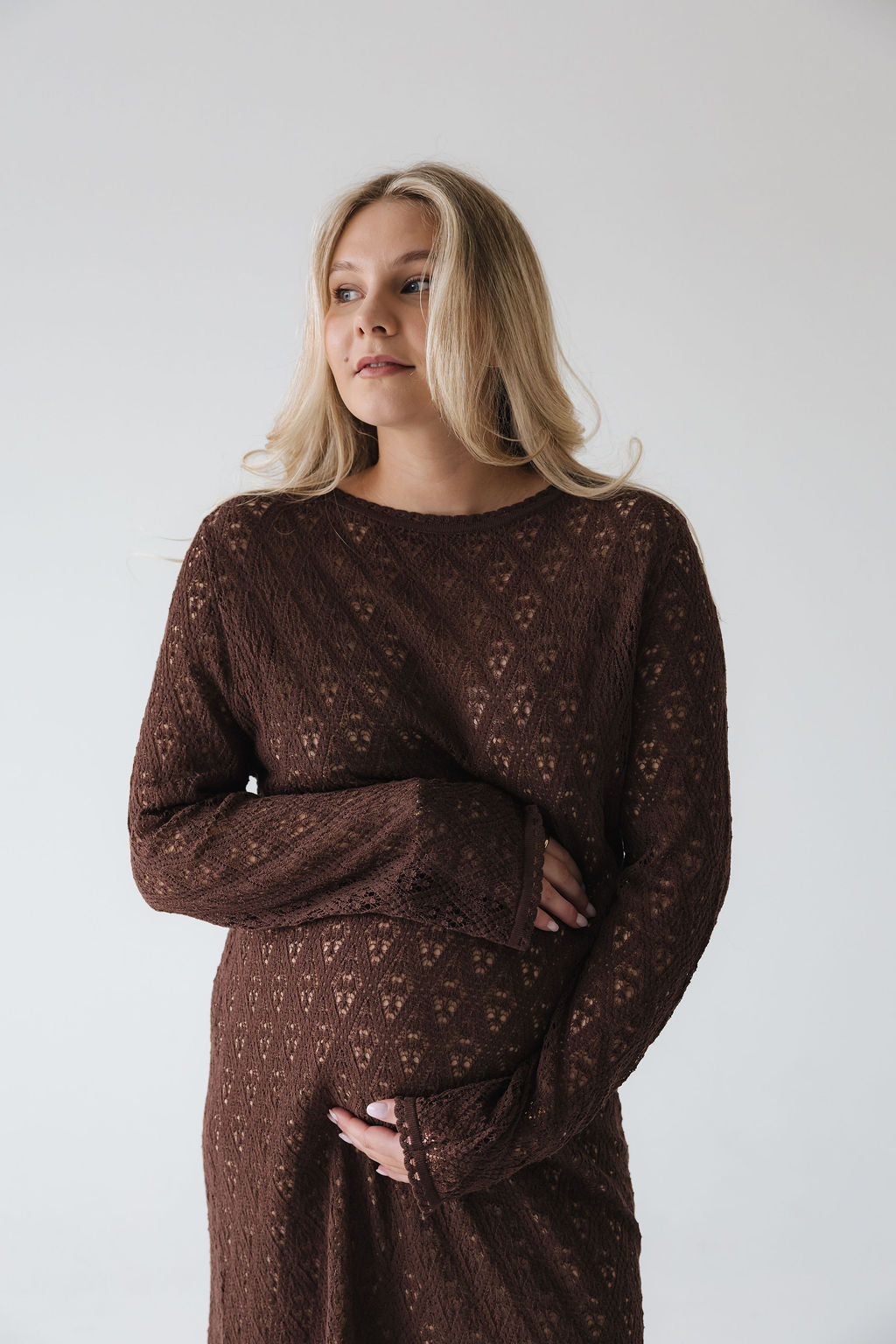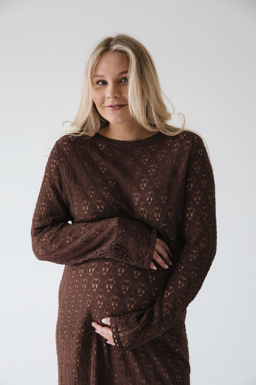 Bella er einstaklega fallegur léttprjónaður kjóll, sem hefur falleg og vönduð smáatriði í mynstri og á öllum endum. Sniðið á kjólnum er oversized, hann er mjög klæðilegur, þæginlegur og auðvelt er að klæða hann fyrir hversdagsleikann, ferðalagið eða út á lífið.