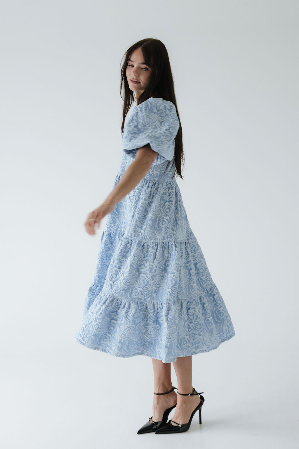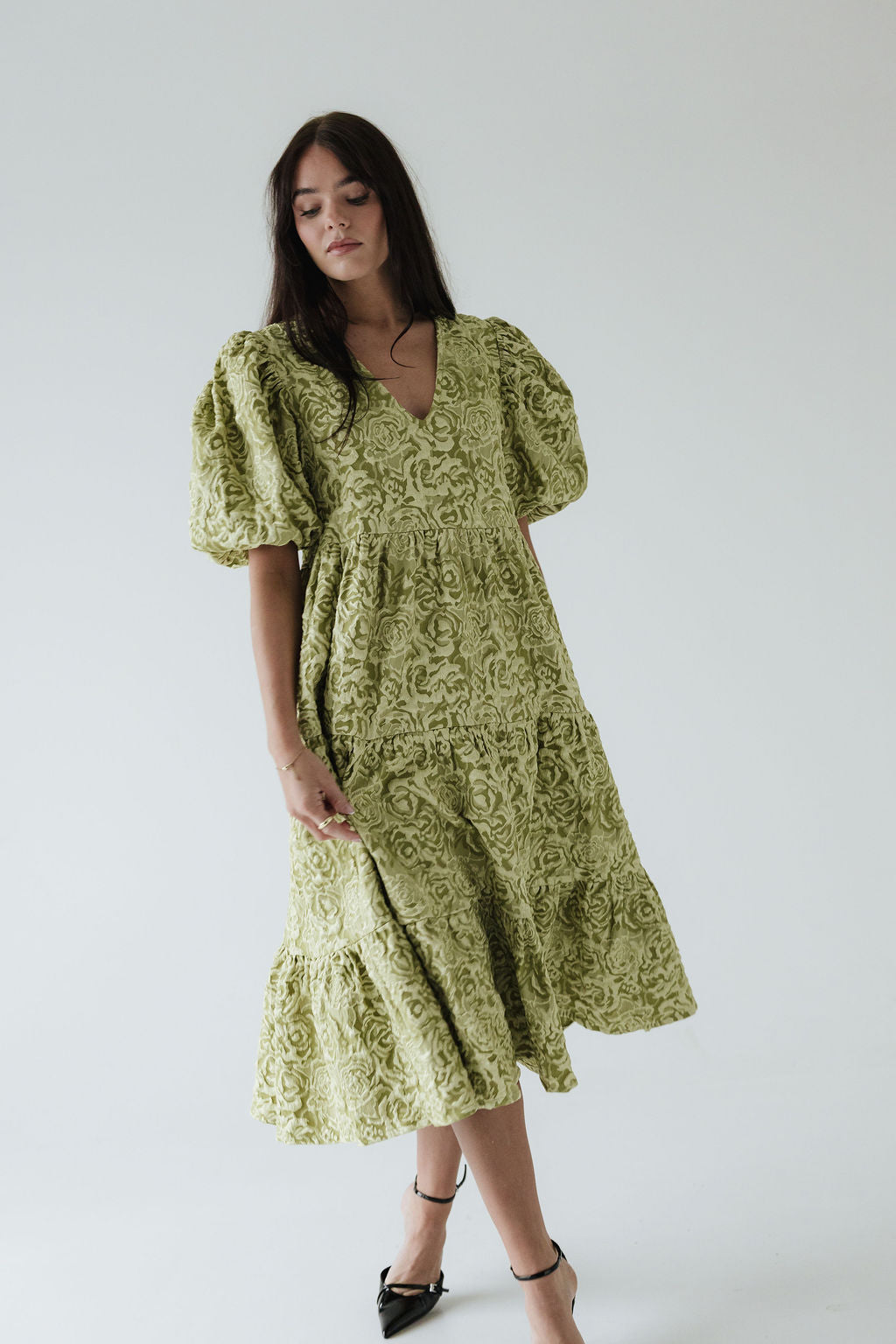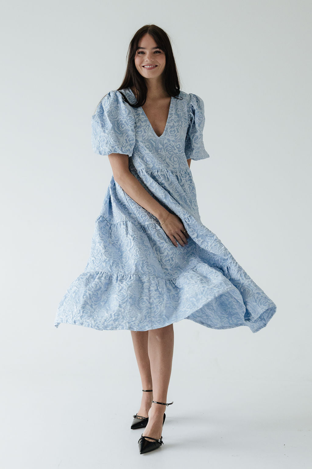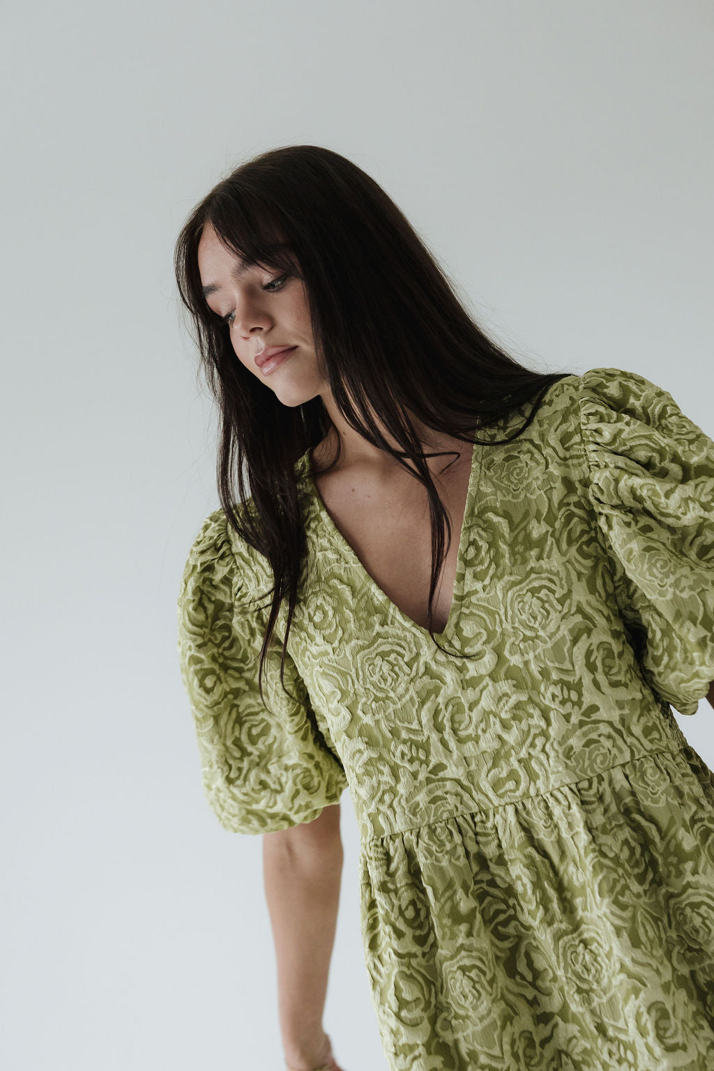 Dúa • kjólinn er svo flæðandi, klæðilegur og fallegur. Það sem gerir gerir hann einstakan er efnið og áferðin, kjóllinn kemur í fjórum litum í þessu fallega blómamynstri sem skín svo fallega í gegn þar sem það er smá upphleypt. Ermarnar eru útvíðar en dregnar saman með teygju aðeins fyrir ofan olnboga. Dúa var hönnuð með það að markmiði að búa til tímalausa flík sem hægt er að nota á öllum árstímum og þá helst með þægindi efst í huga 🤍