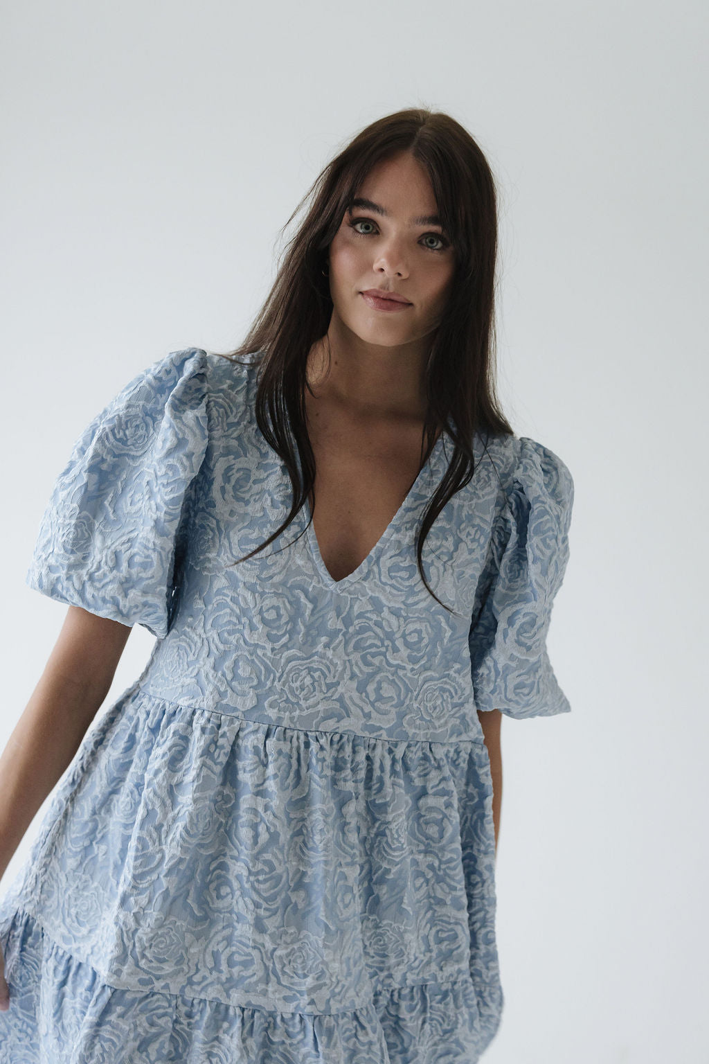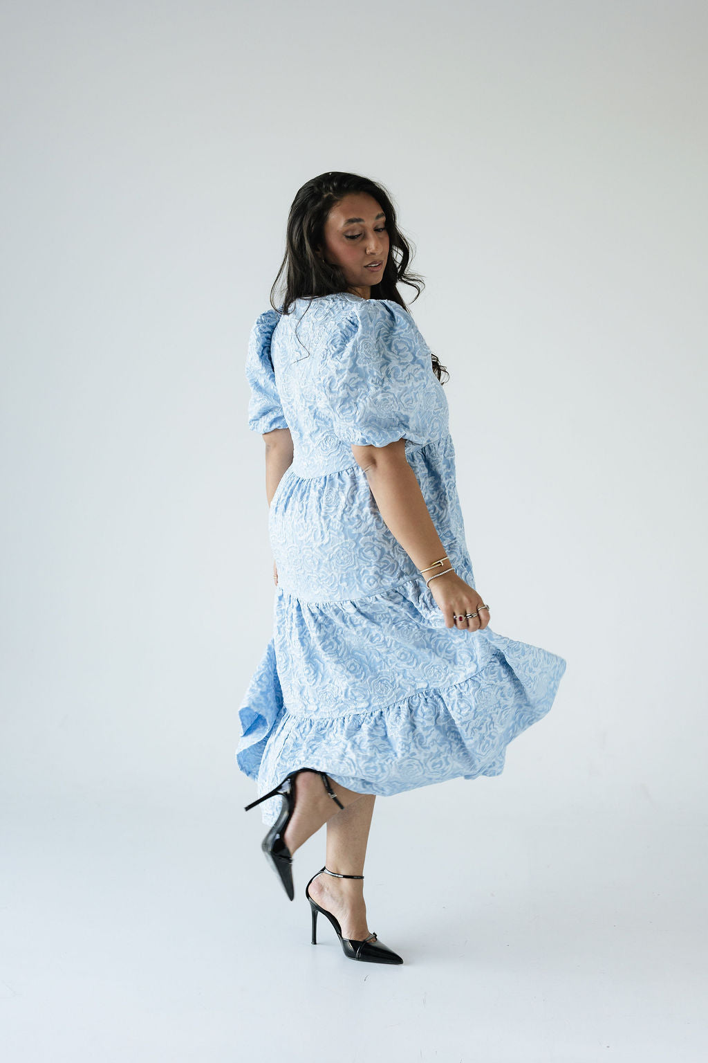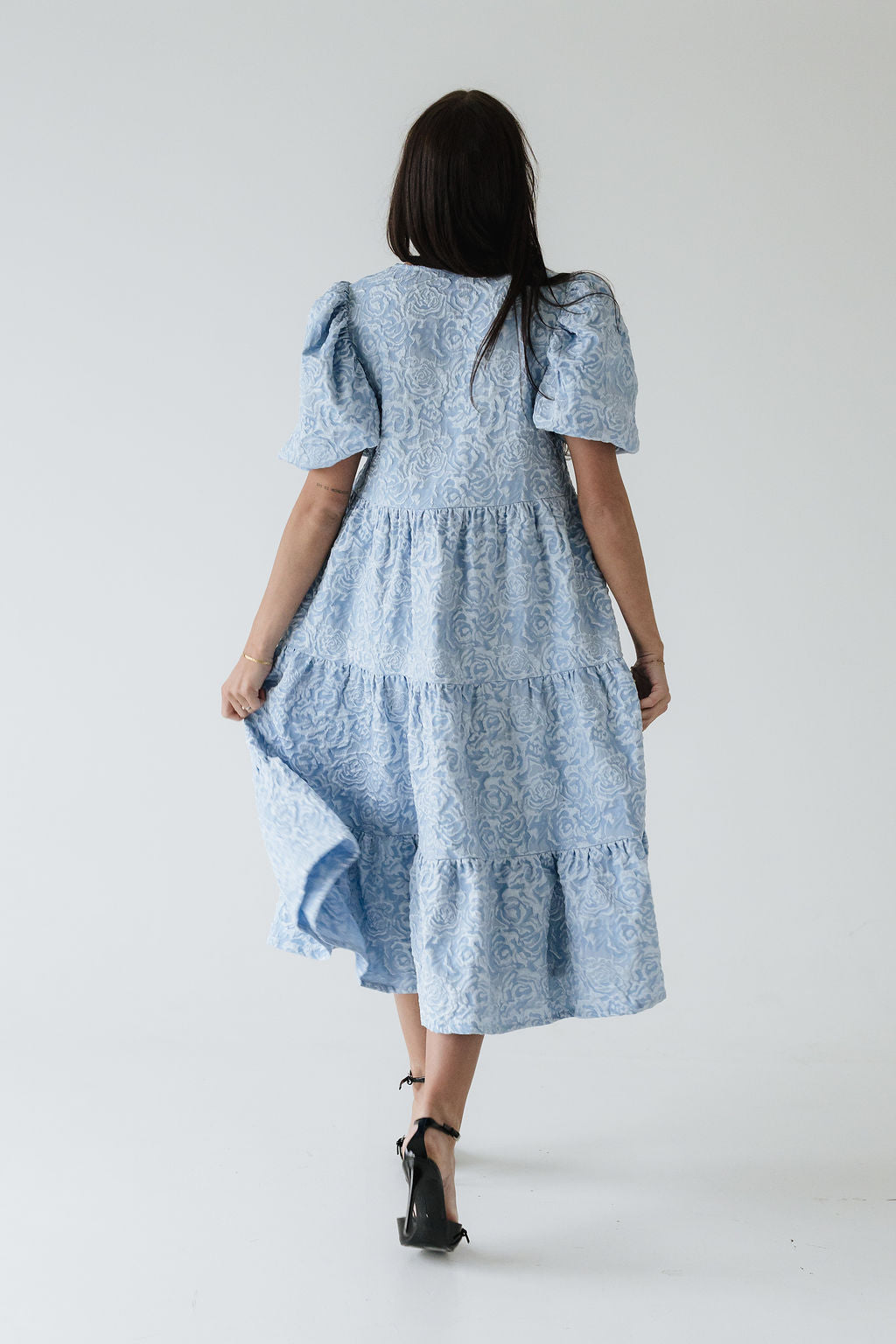 Dúa • kjólinn er svo flæðandi, klæðilegur og fallegur. Það sem gerir gerir hann einstakan er efnið og áferðin, kjóllinn kemur í fjórum litum í þessu fallega blómamynstri sem skín svo fallega í gegn þar sem það er smá upphleypt. Ermarnar eru útvíðar en dregnar saman með teygju aðeins fyrir ofan olnboga. Dúa var hönnuð með það að markmiði að búa til tímalausa flík sem hægt er að nota á öllum árstímum og þá helst með þægindi efst í huga 🤍