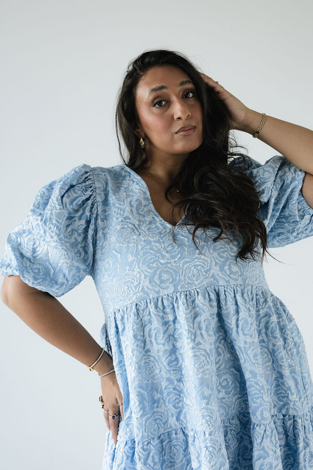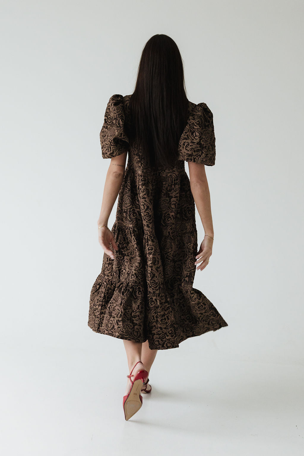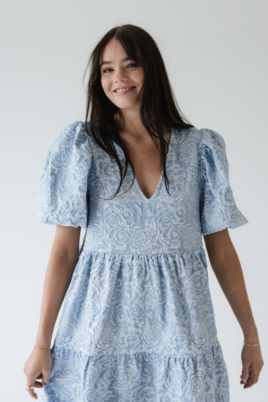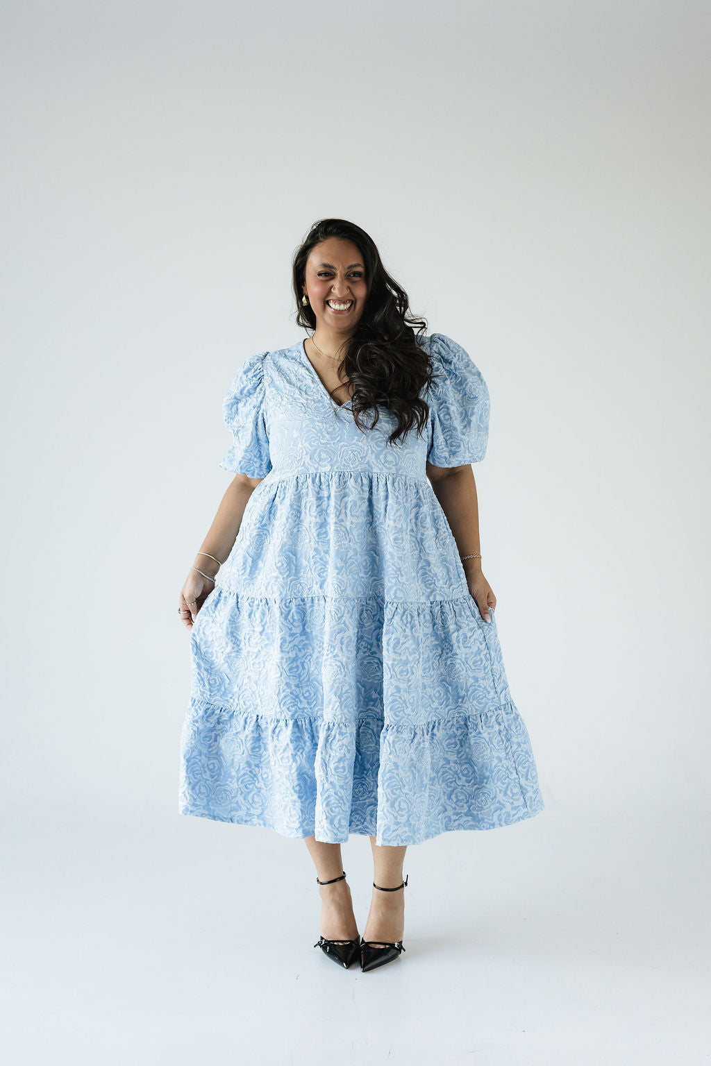 Dúa • kjólinn er svo flæðandi, klæðilegur og fallegur. Það sem gerir gerir hann einstakan er efnið og áferðin, kjóllinn kemur í fjórum litum í þessu fallega blómamynstri sem skín svo fallega í gegn þar sem það er smá upphleypt. Ermarnar eru útvíðar en dregnar saman með teygju aðeins fyrir ofan olnboga. Dúa var hönnuð með það að markmiði að búa til tímalausa flík sem hægt er að nota á öllum árstímum og þá helst með þægindi efst í huga 🤍