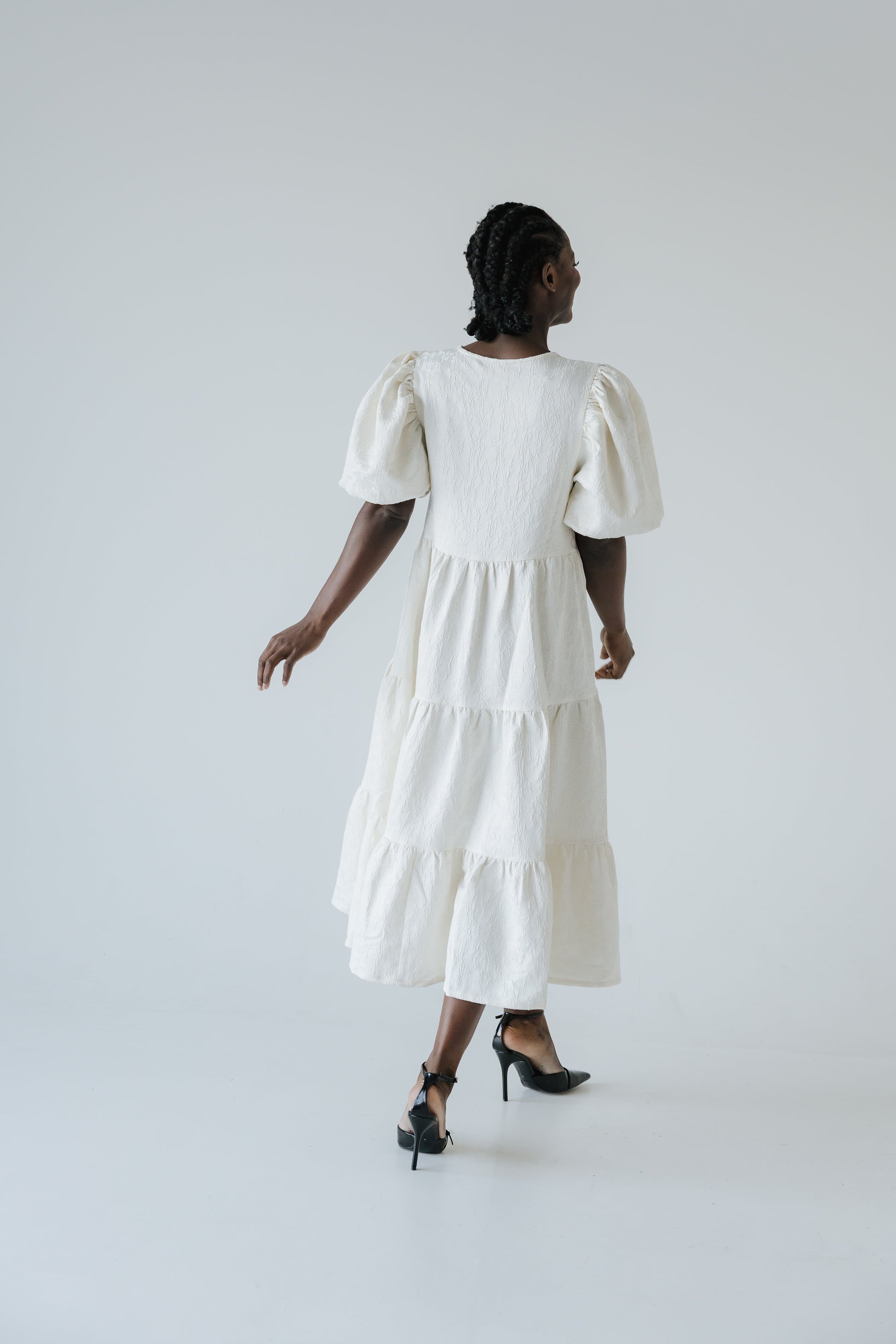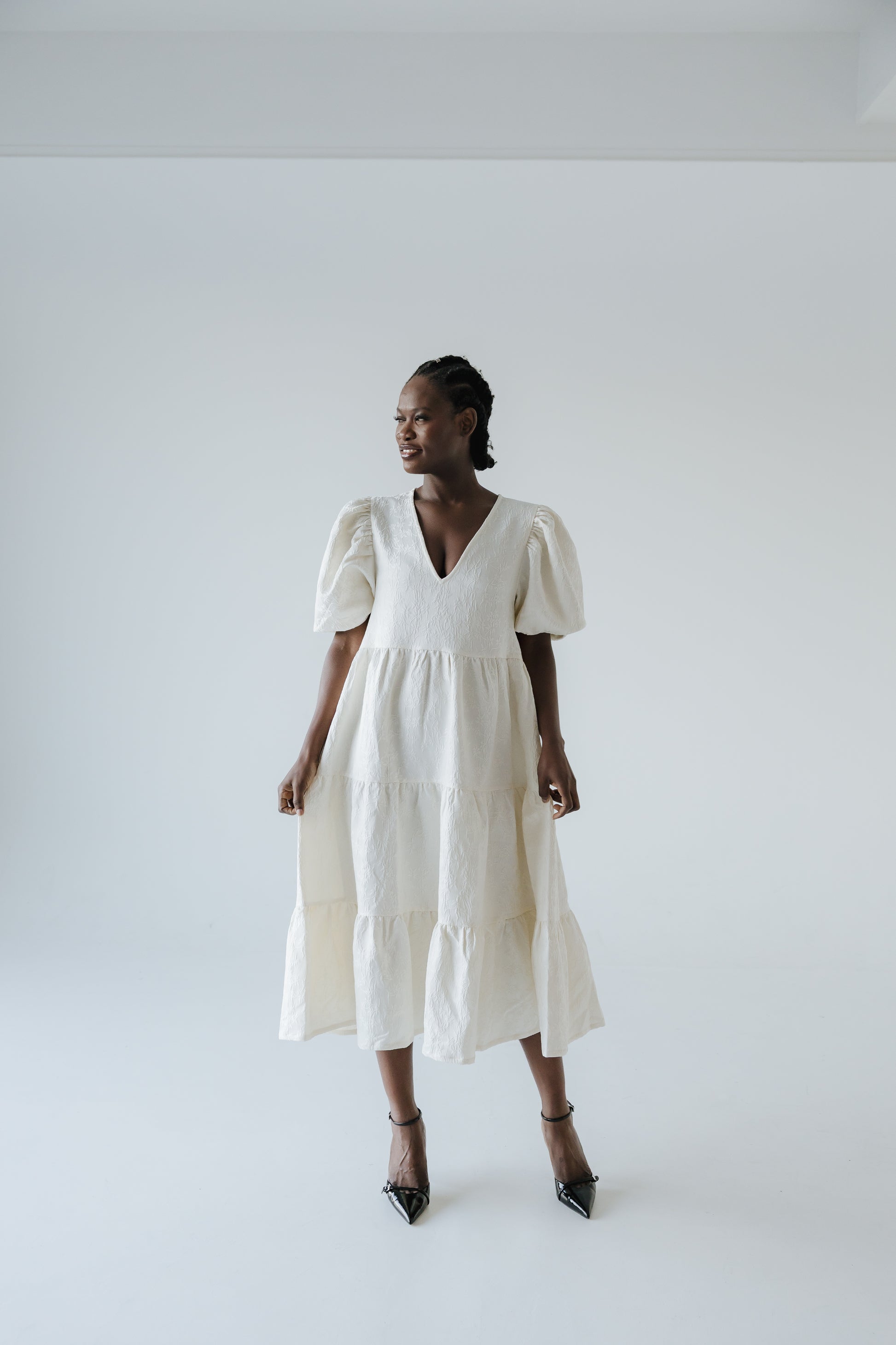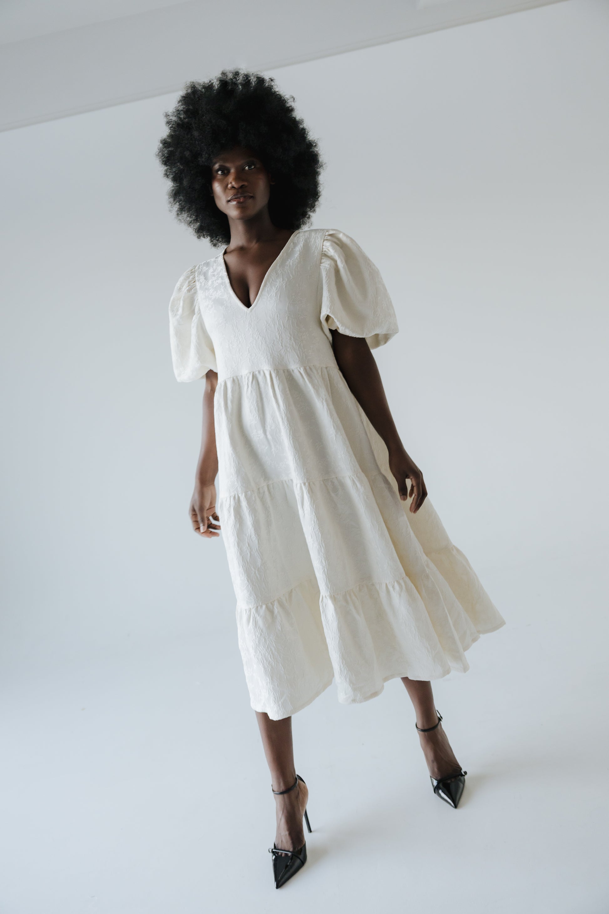 Dúa • kjólinn er svo flæðandi, klæðilegur og fallegur. Það sem gerir gerir hann einstakan er efnið og áferðin, kjóllinn kemur aðeins í kremuðu og úr sama efni og vinsæla Ivý blússanokkar. Ermarnar eru útvíðar en dregnar saman með teygju aðeins fyrir ofan olnboga. Dúa var hönnuð með það að markmiði að búa til tímalausa flík sem hægt er að nota á öllum árstímum og þá helst með þægindi efst í huga 🤍