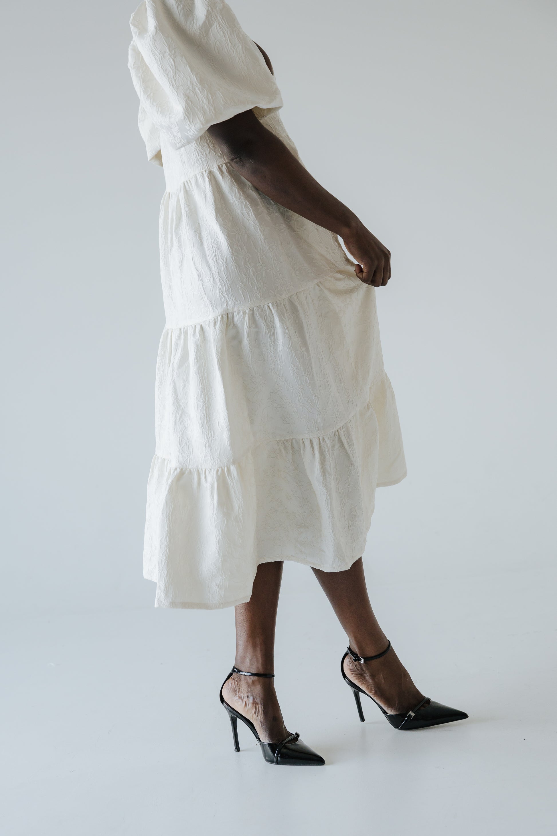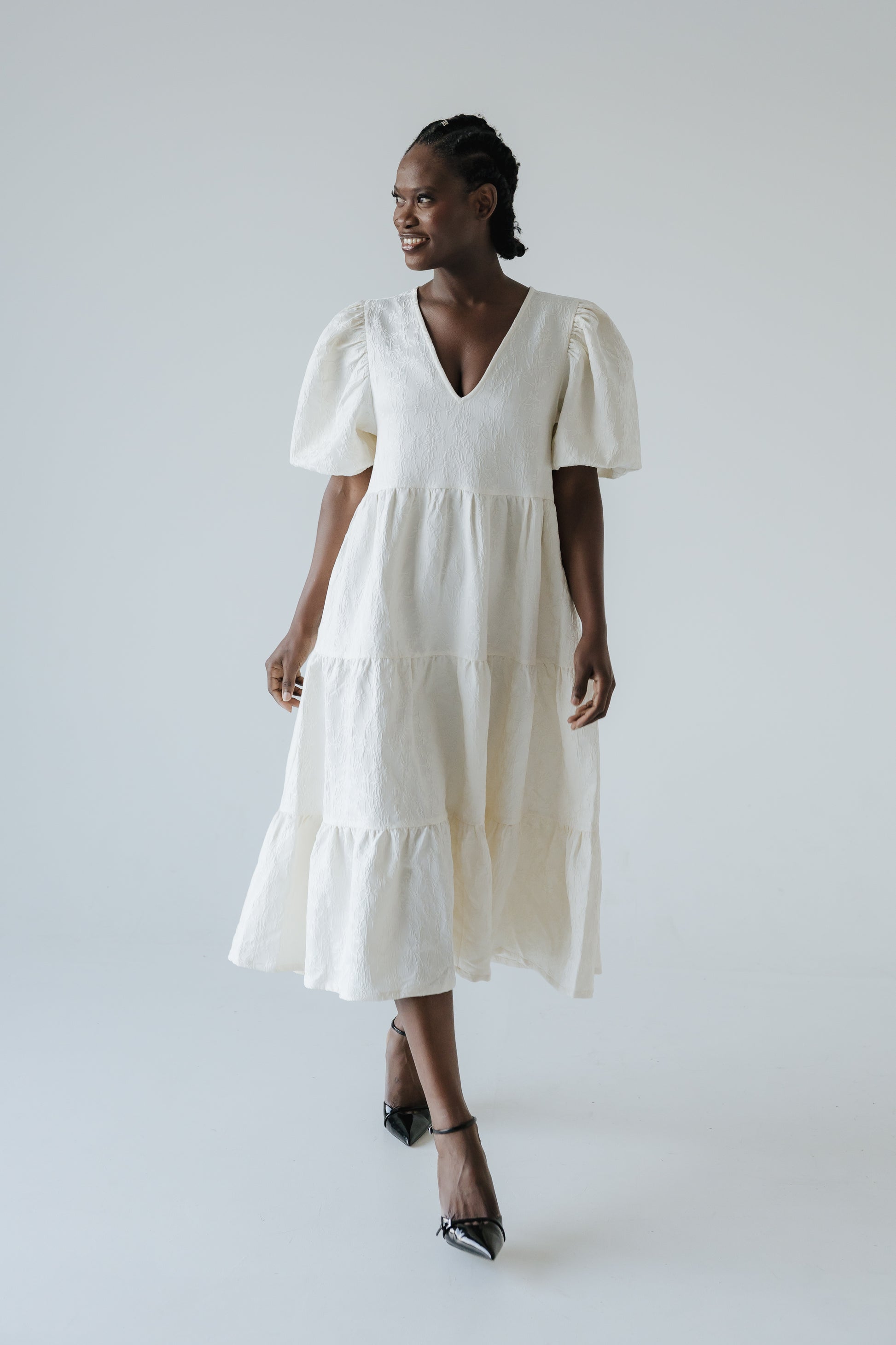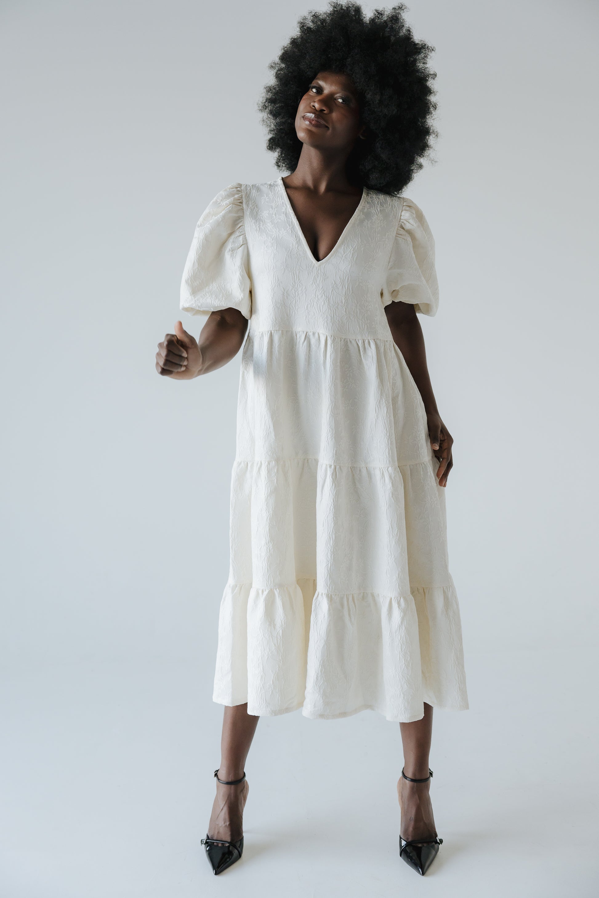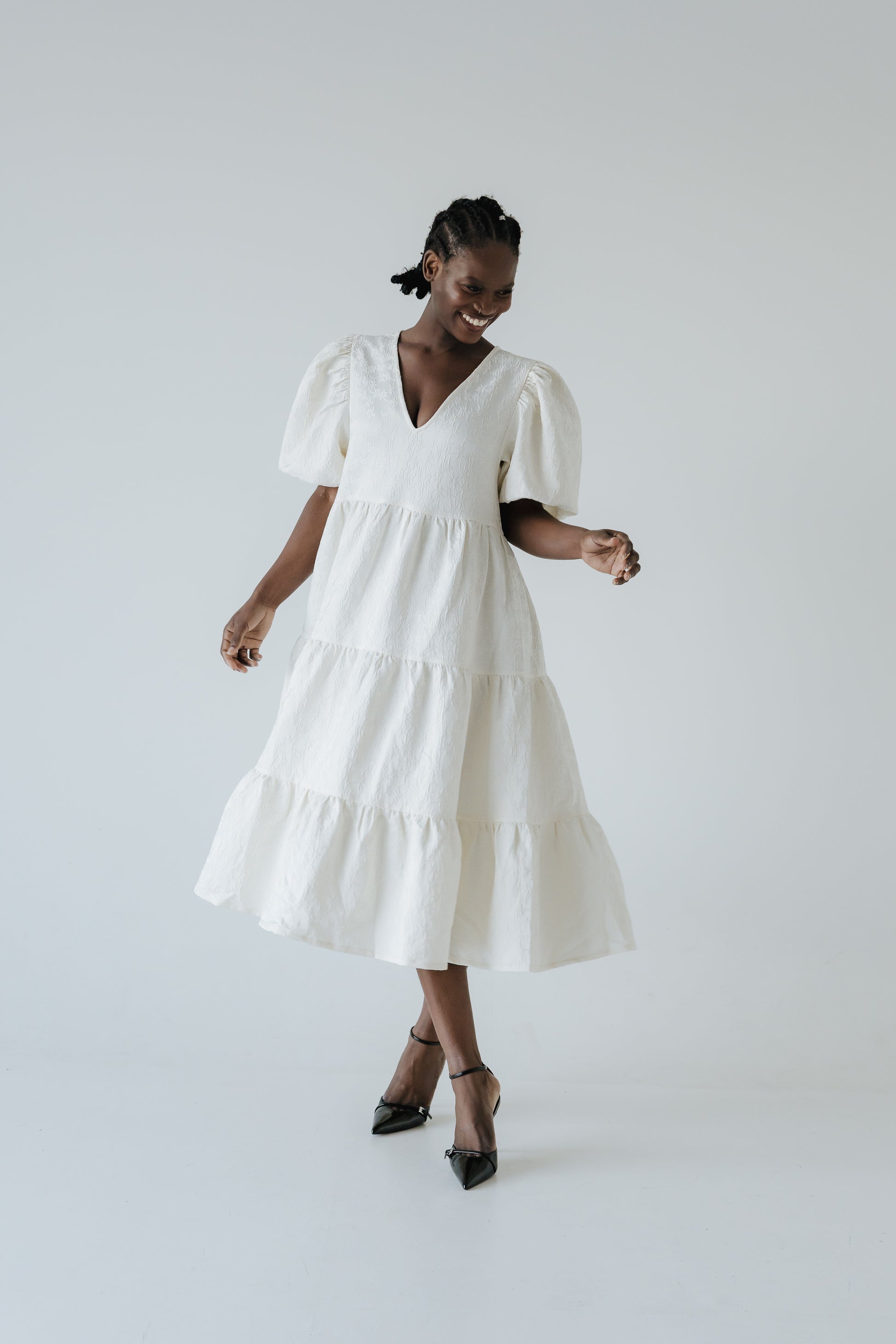 Dúa • kjólinn er svo flæðandi, klæðilegur og fallegur. Það sem gerir gerir hann einstakan er efnið og áferðin, kjóllinn kemur aðeins í kremuðu og úr sama efni og vinsæla Ivý blússanokkar. Ermarnar eru útvíðar en dregnar saman með teygju aðeins fyrir ofan olnboga. Dúa var hönnuð með það að markmiði að búa til tímalausa flík sem hægt er að nota á öllum árstímum og þá helst með þægindi efst í huga 🤍