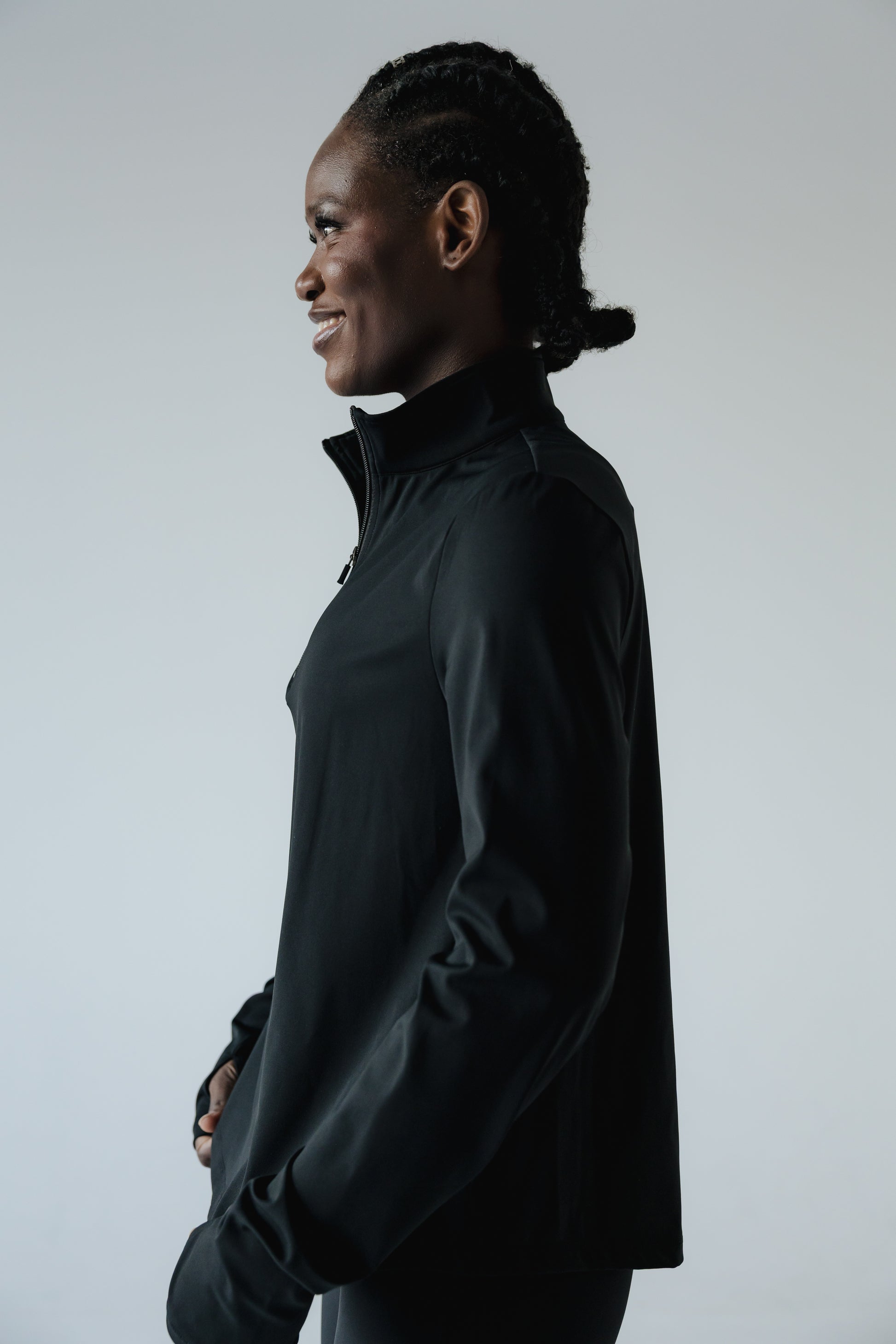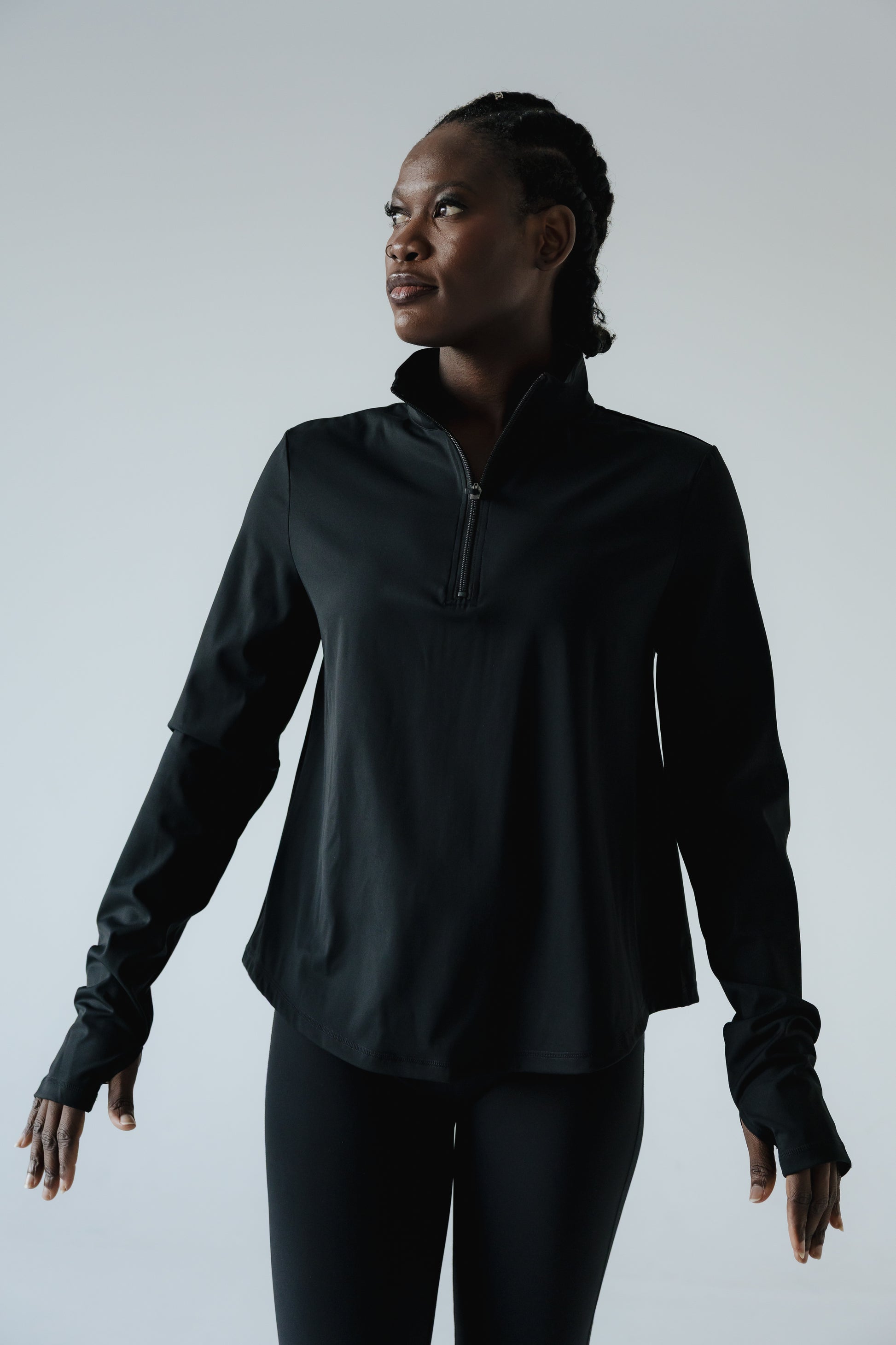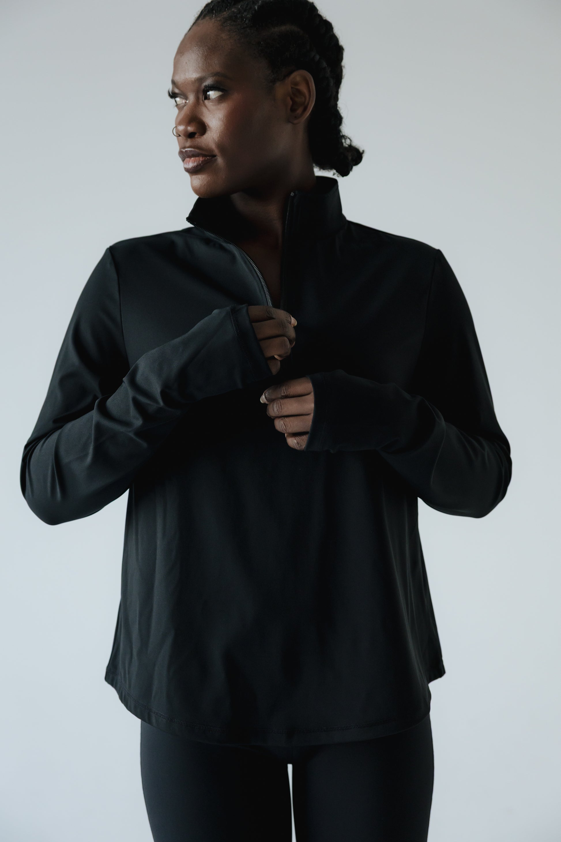 Mikil vinna fór í að fullkomna sniðið á peysunni svo hún henti mörgum stærðum og þrengi ekki að yfir magasvæði. Hún er aðsniðinn að ofan og víð og síð yfir maga. Við hönnun á peysunni var markmiðið að hún myndi ganga við fleiri tilefni en aðeins í ræktina og heppnaðist það einstaklega vel. Hún er einnig fullkomin í hversdagsleikann heima við, vinnuna og útiveru.