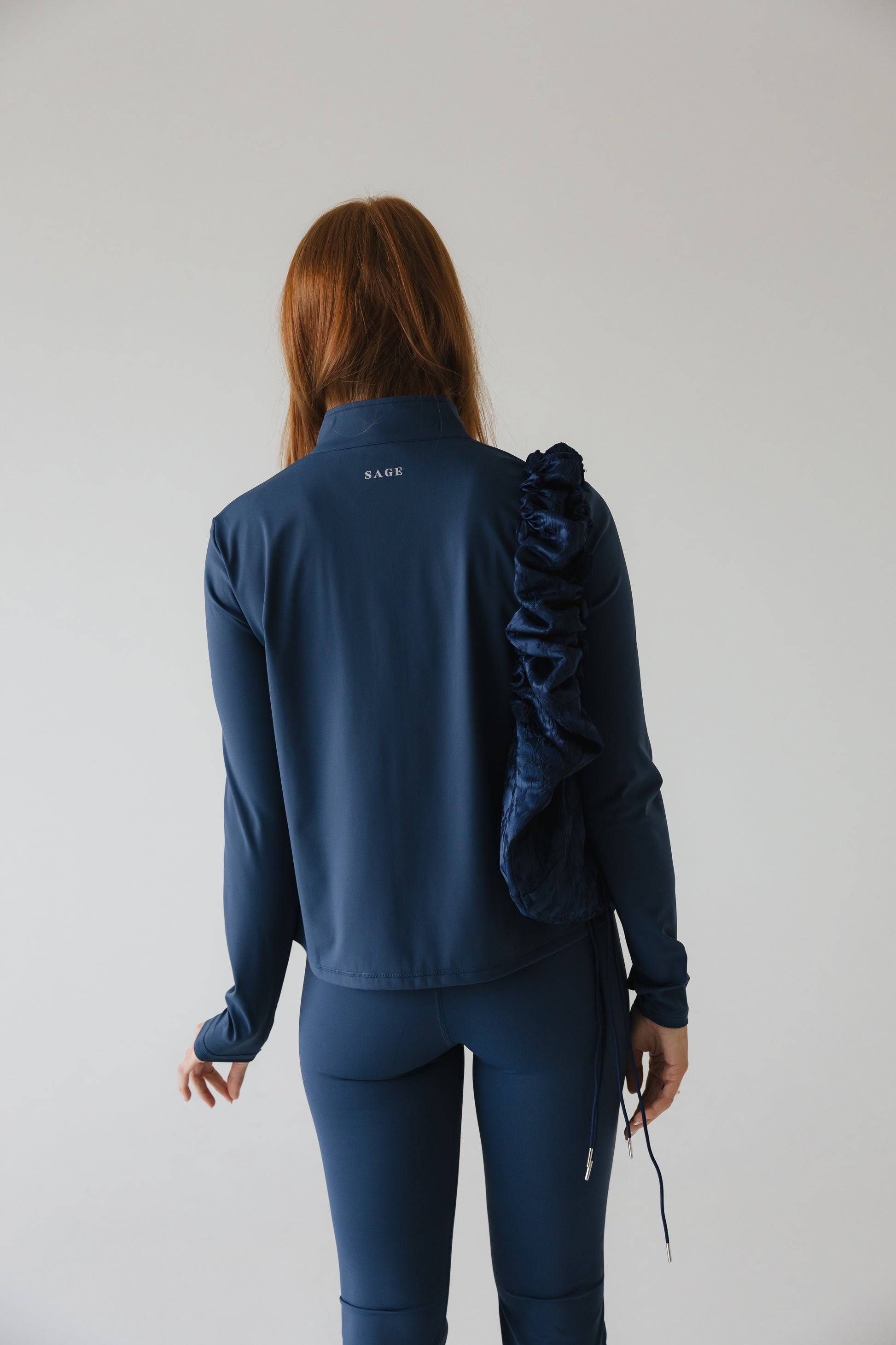 Líf - Mikil vinna fór í að fullkomna sniðið á peysunni svo hún henti mörgum stærðum og þrengi ekki að yfir magasvæði. Hún er aðsniðinn að ofan og víð og síð yfir maga. Við hönnun á peysunni var markmiðið að hún myndi ganga við fleiri tilefni en aðeins í ræktina og heppnaðist það einstaklega vel. Hún er einnig fullkomin í hversdagsleikann heima við, vinnuna og útiveru.