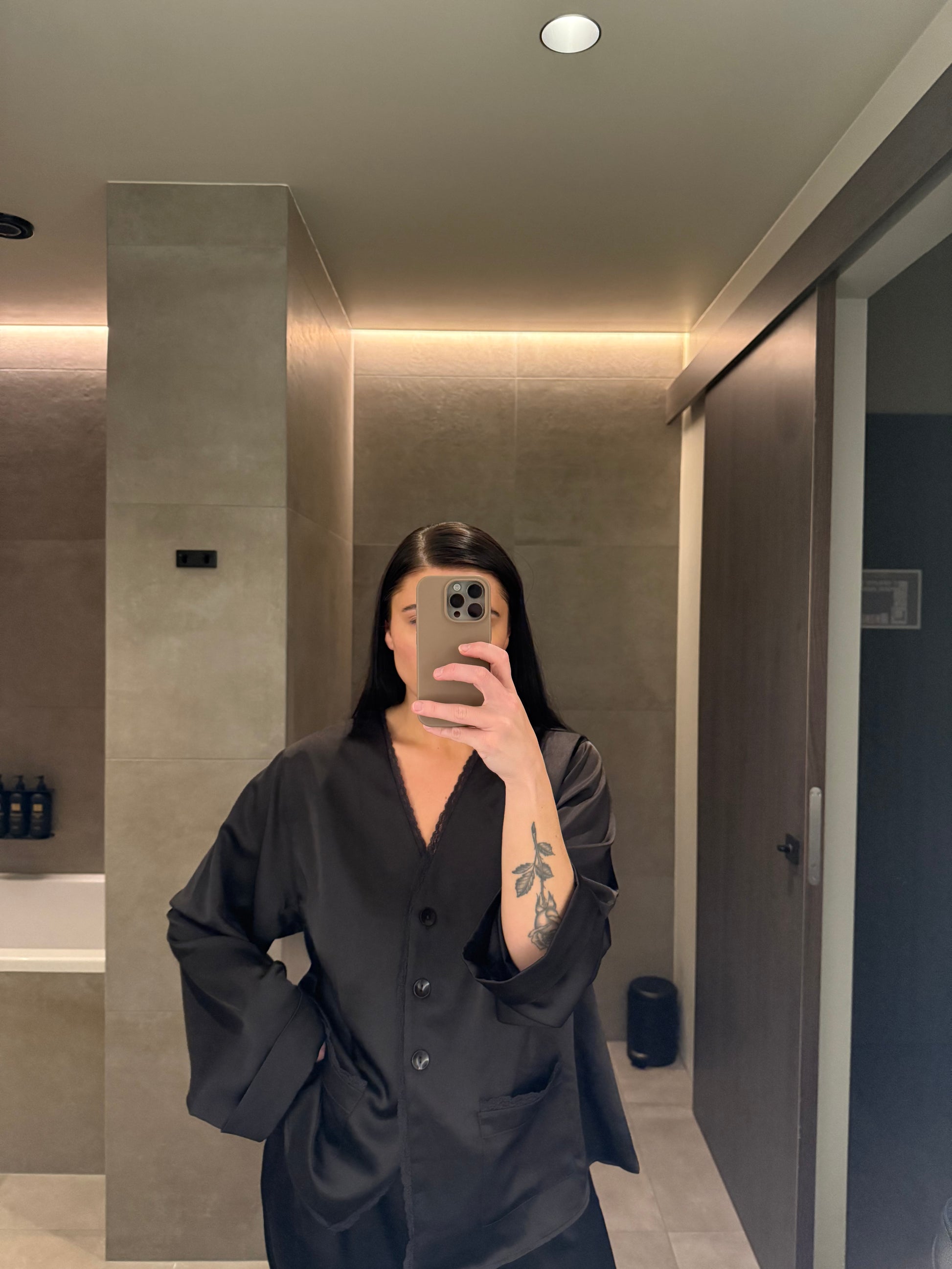 Laufey blússan er hönnuð með þægindi efst í huga. Blússan er með fallegri blúndu á hálsmáli og á vösum. Blússan hefur þann eiginleika að neðan á báðum ermum er efnið uppábrett og þar er lítill saumur sem hægt er að rekja upp, strauja og þá er hægt að lengja flíkina ef þess er óskað.
