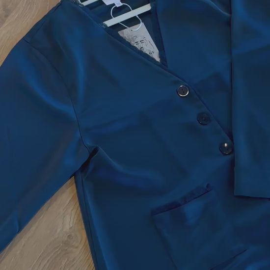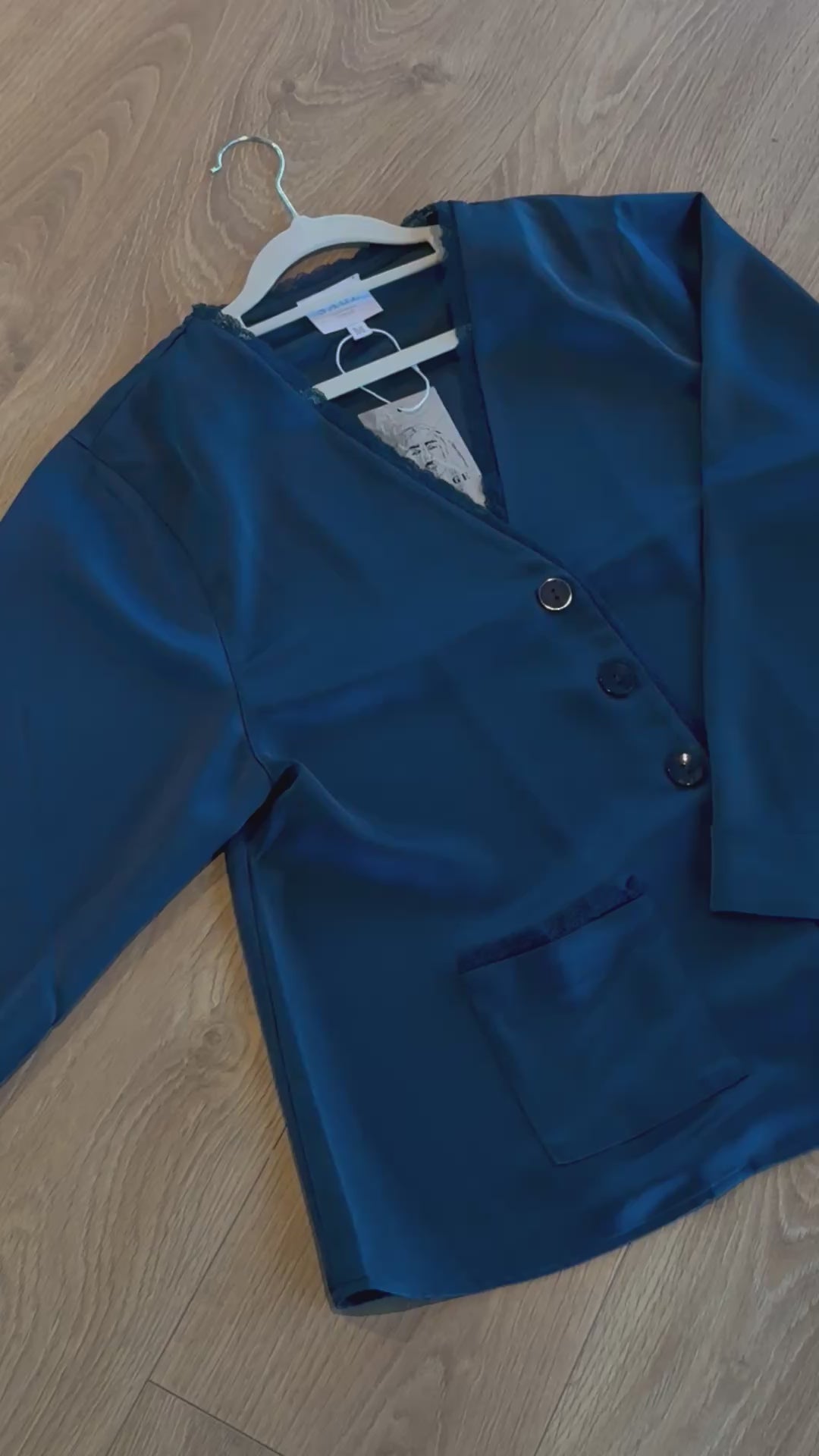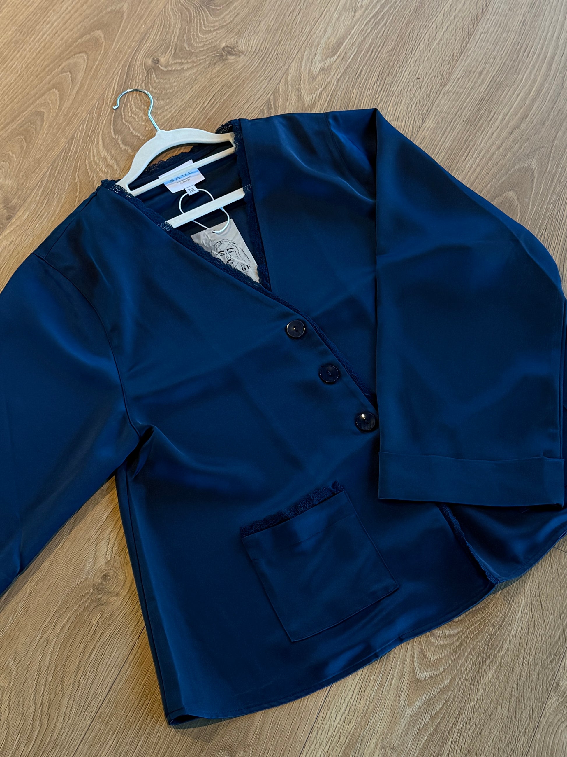 Blússan kemur í tveimur litum, dökkbláu og expresso brúnum og hún parast fullkomlega við Myrru buxurnar sem koma í sömu litum.