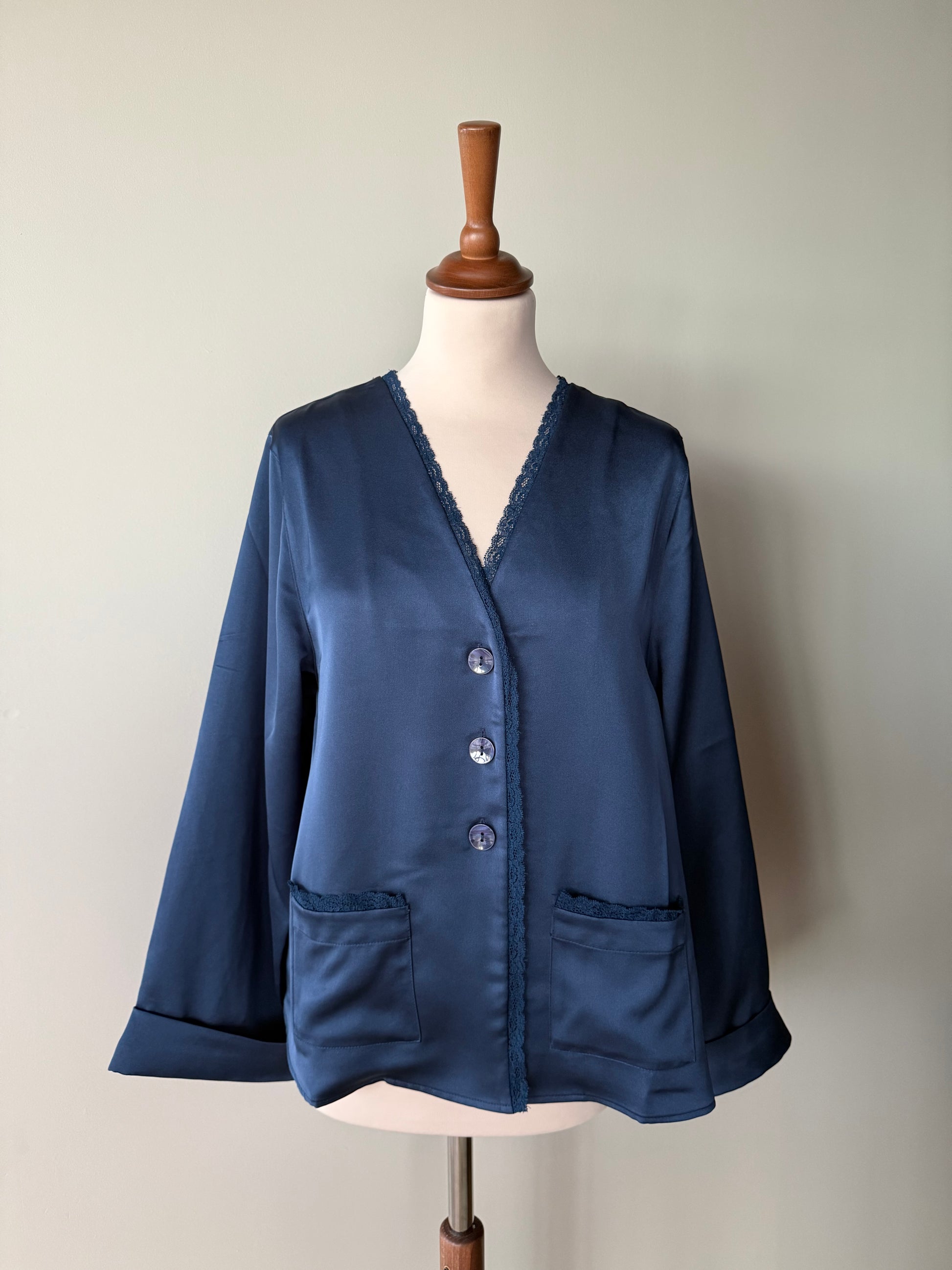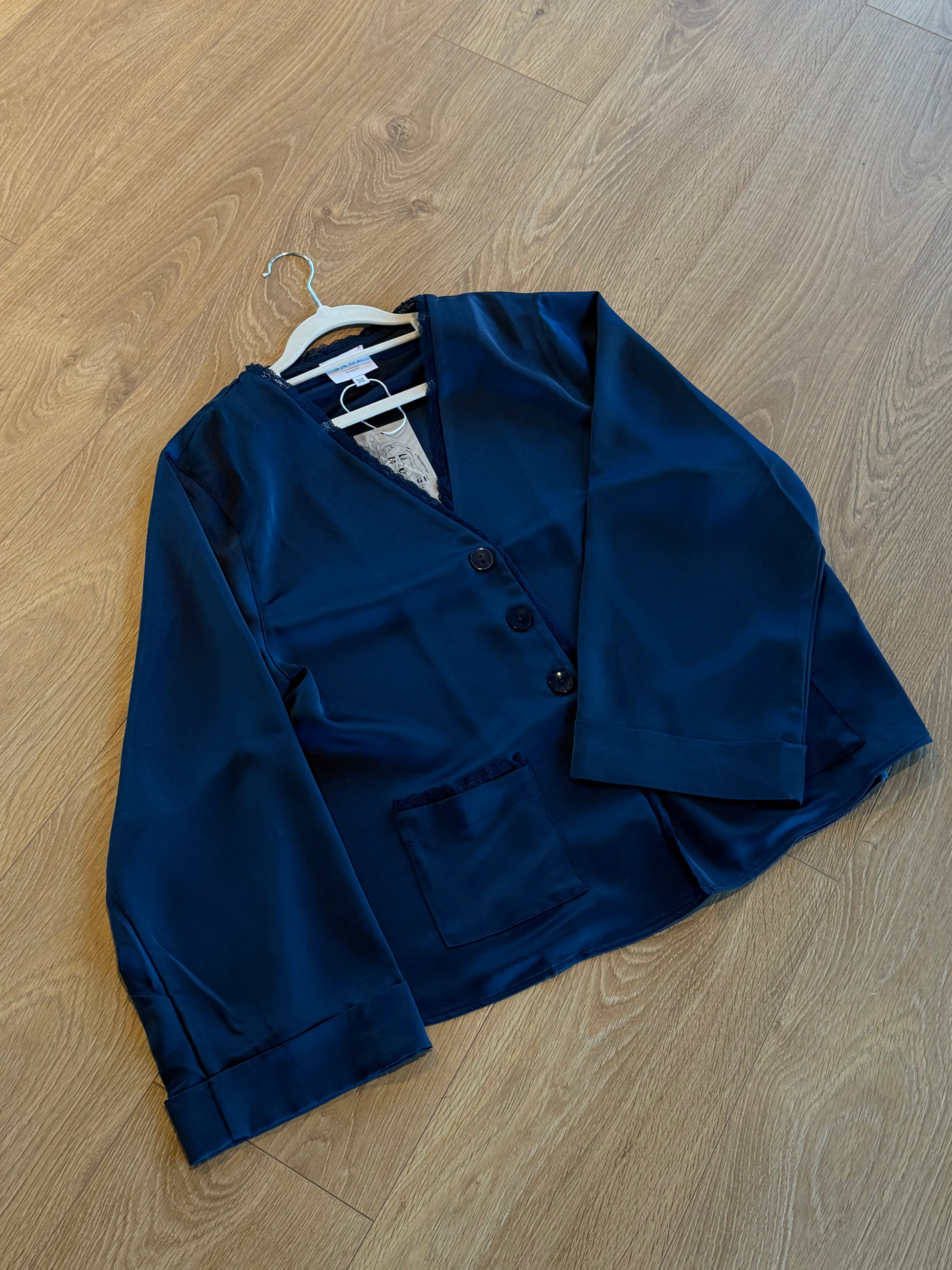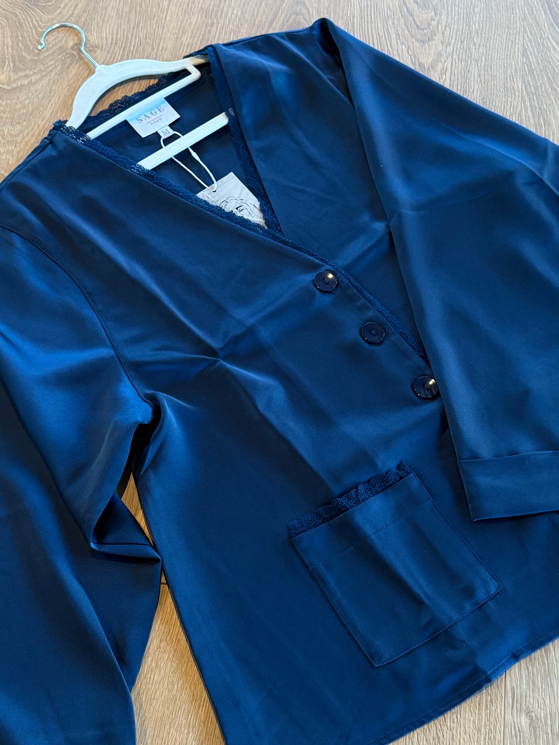Blússan kemur í tveimur litum, dökkbláu og expresso brúnum og hún parast fullkomlega við Myrru buxurnar sem koma í sömu litum.