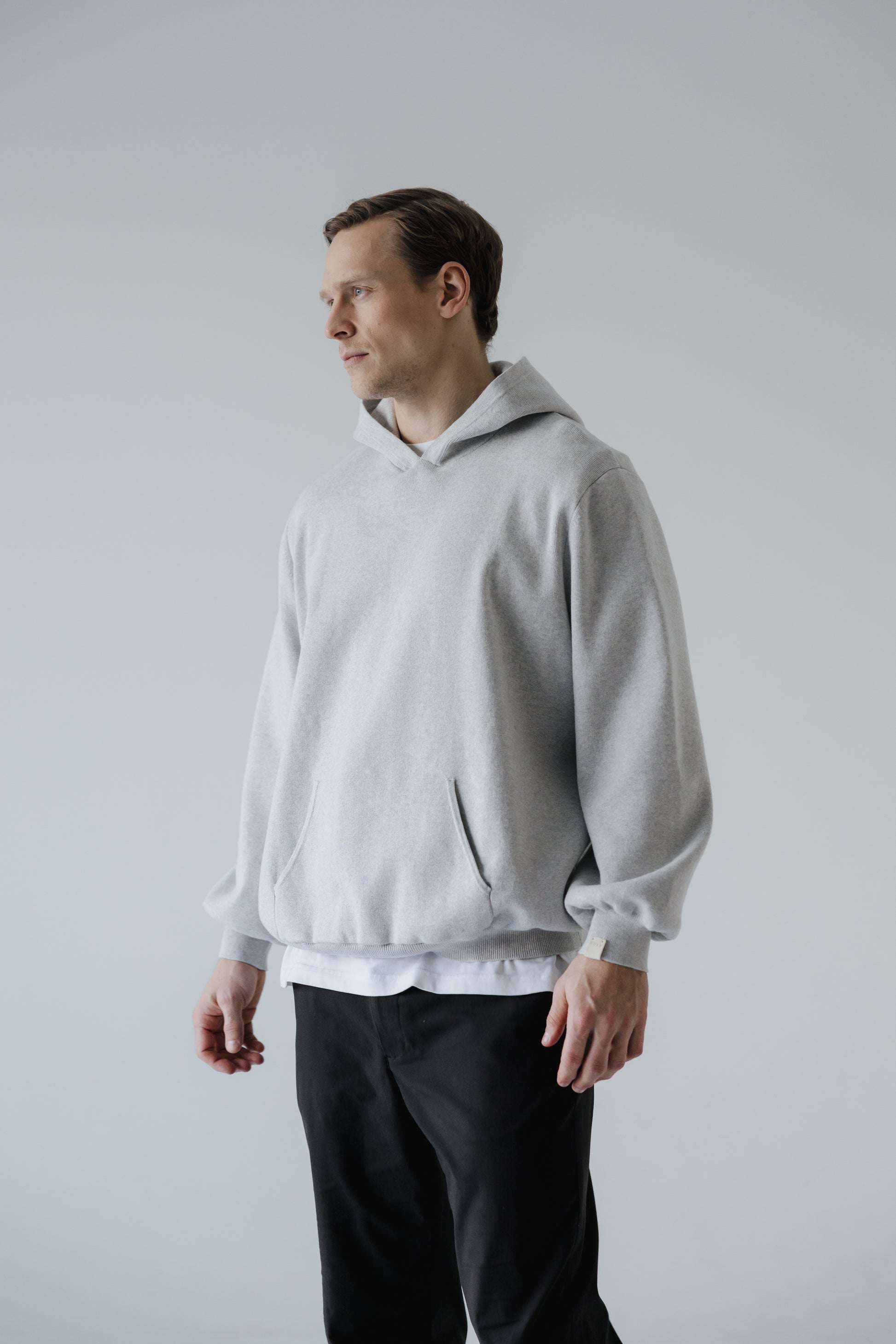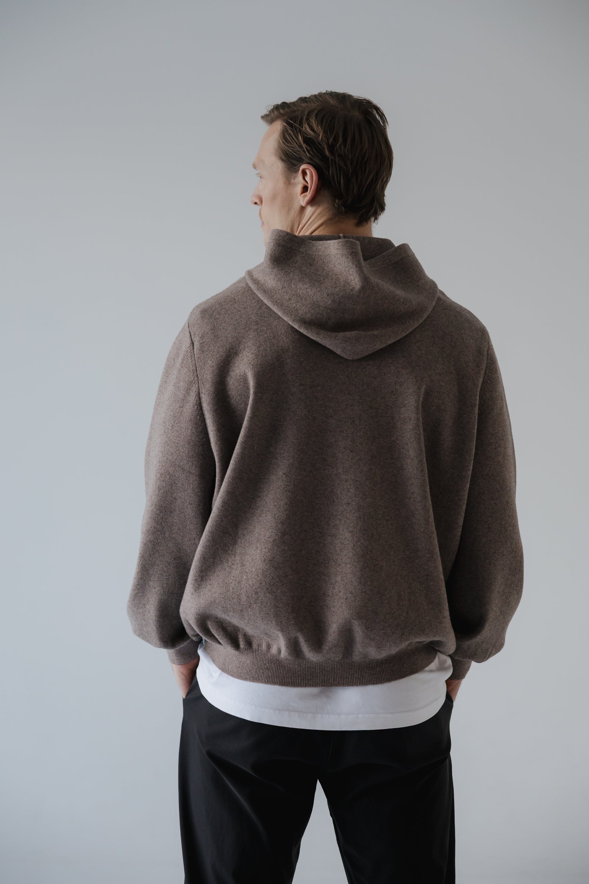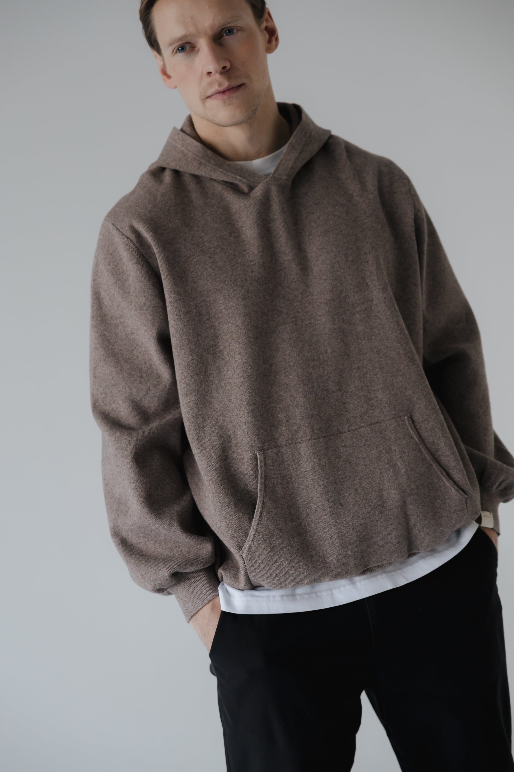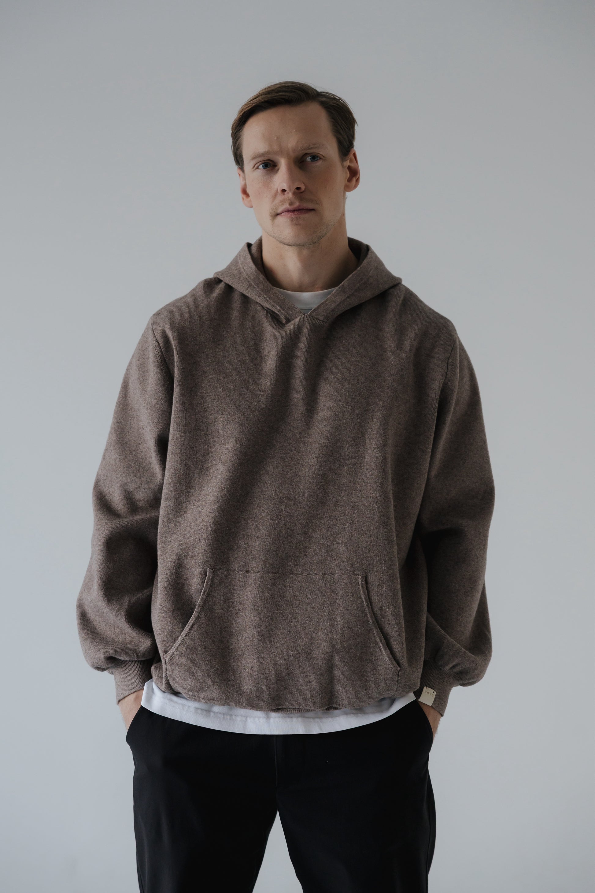 Máney er prjónuð hettupeysa þar sem mikil áherlsa var lögð á fallegt klæðilegt snið. Hún er prjónuð úr 20% ull og 80% bómull sem gerir hala hlýja og endingargóða. Peysan kemur í tveimur litum ljós brúnu og ljós gráum og hentar vel fyrir öll kyn.