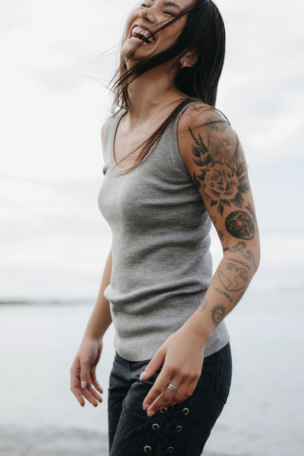 Mjúk hlýrabolurinn er prjónaður úr 100% merino ull. Bolurinn er hannaður útfrá vinsæla síðerma ullarbolnum okkar, rifflað prjónapur svo hann teygjist vel, fallegur frágangur á hálsmáli og í handveg. Mjúk hlýrabolurinn er fullkomin fyrir íslenskt veðurfar sem fyrsta undirlag, í vinnuna, undir blazerinn eða kósýbuxur heimavið.