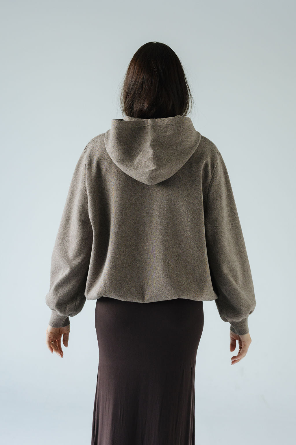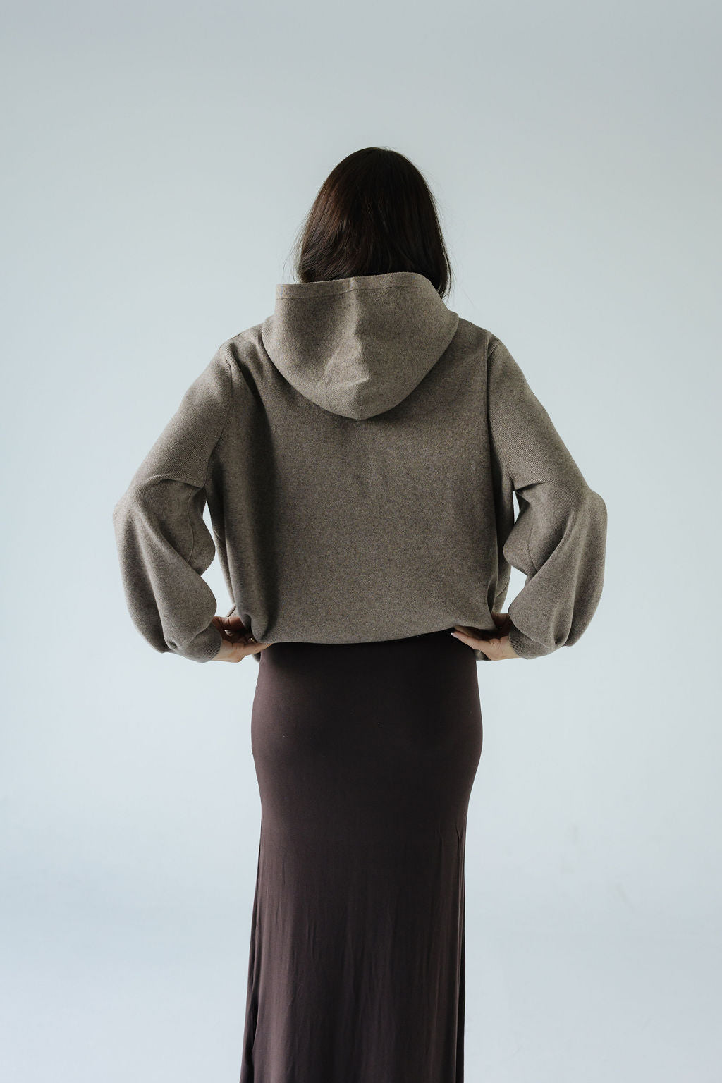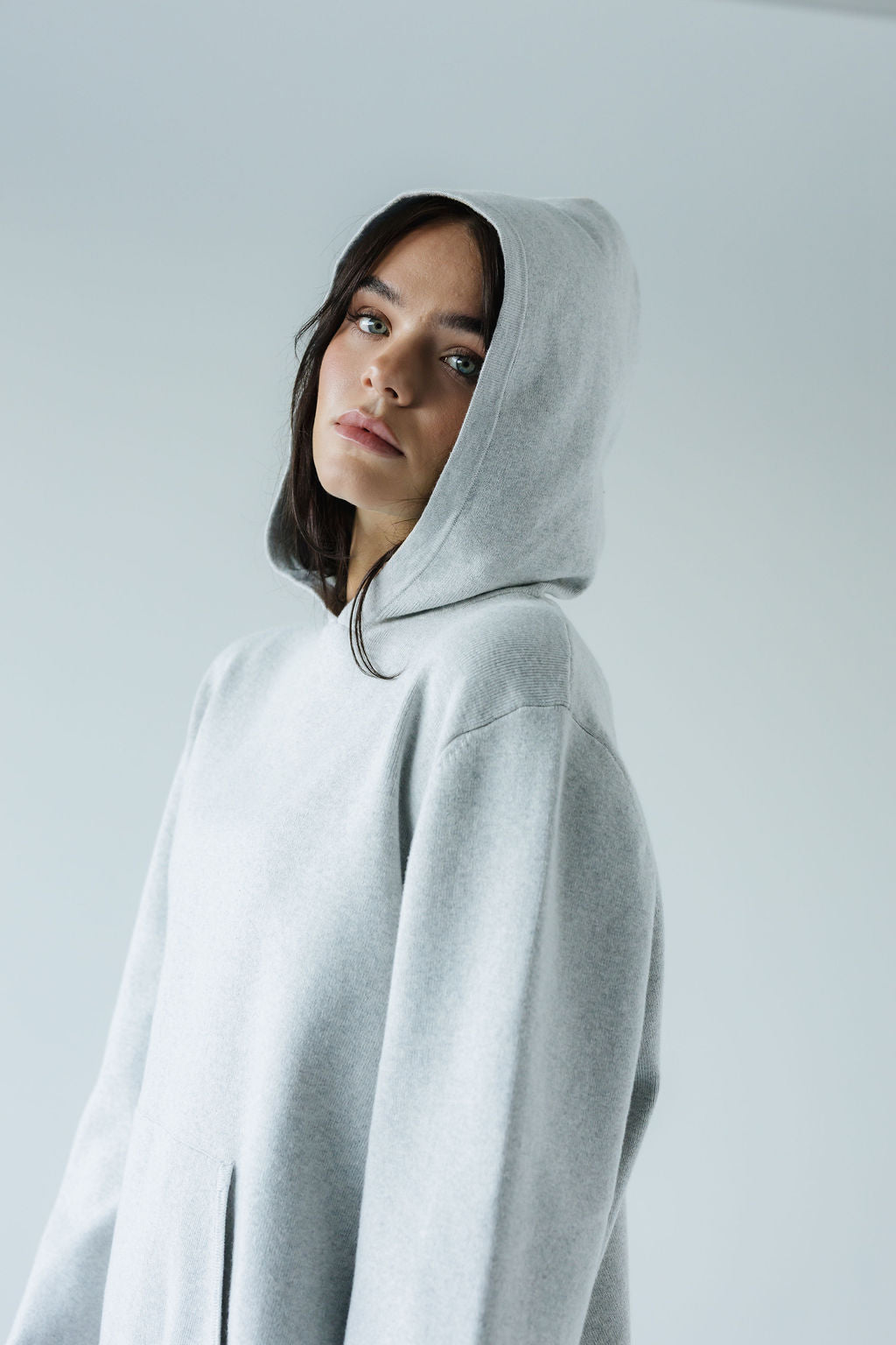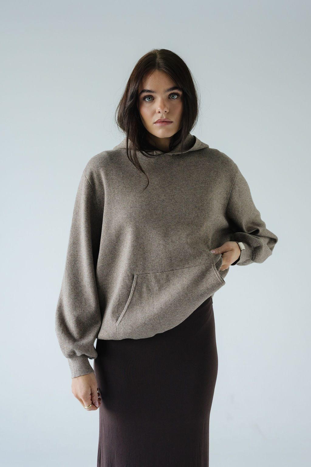 Máney er prjónuð hettupeysa þar sem mikil áherlsa var lögð á fallegt klæðilegt snið. Hún er prjónuð úr 20% ull og 80% bómull sem gerir hala hlýja og endingargóða. Peysan kemur í tveimur litum ljós brúnu og ljós gráum.