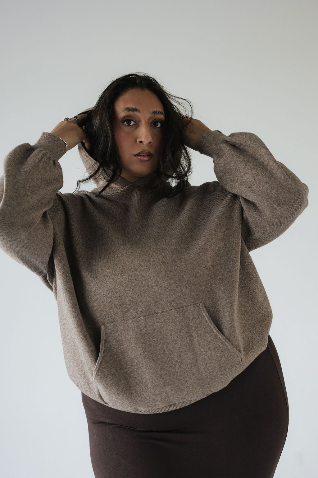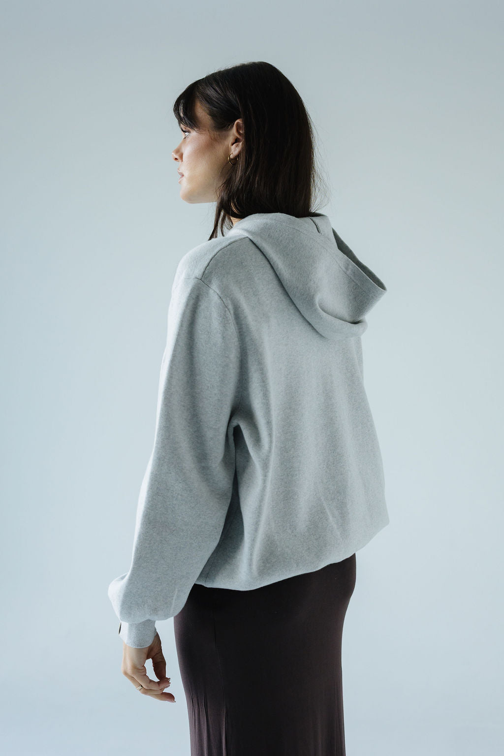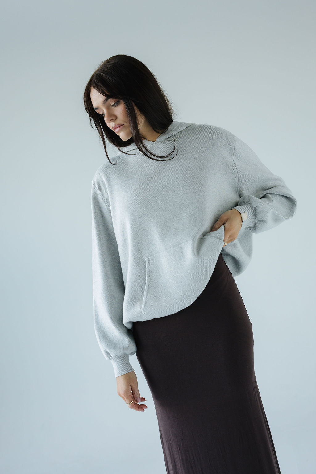 Máney er prjónuð hettupeysa þar sem mikil áherlsa var lögð á fallegt klæðilegt snið. Hún er prjónuð úr 20% ull og 80% bómull sem gerir hala hlýja og endingargóða. Peysan kemur í tveimur litum ljós brúnu og ljós gráum.