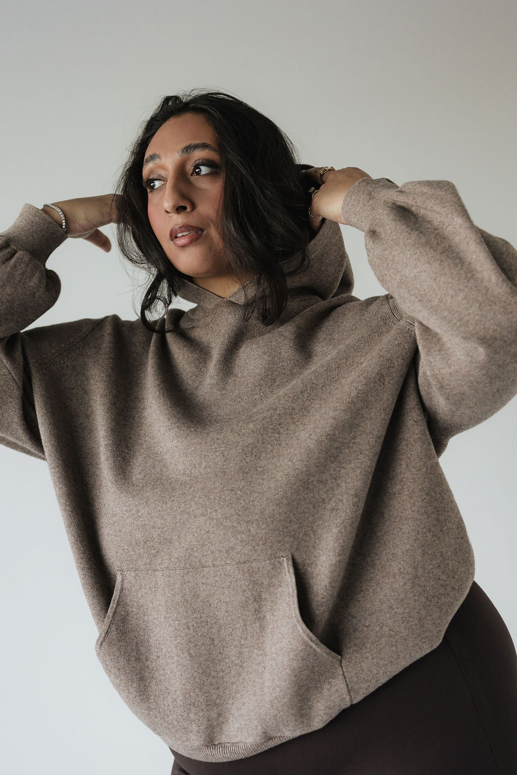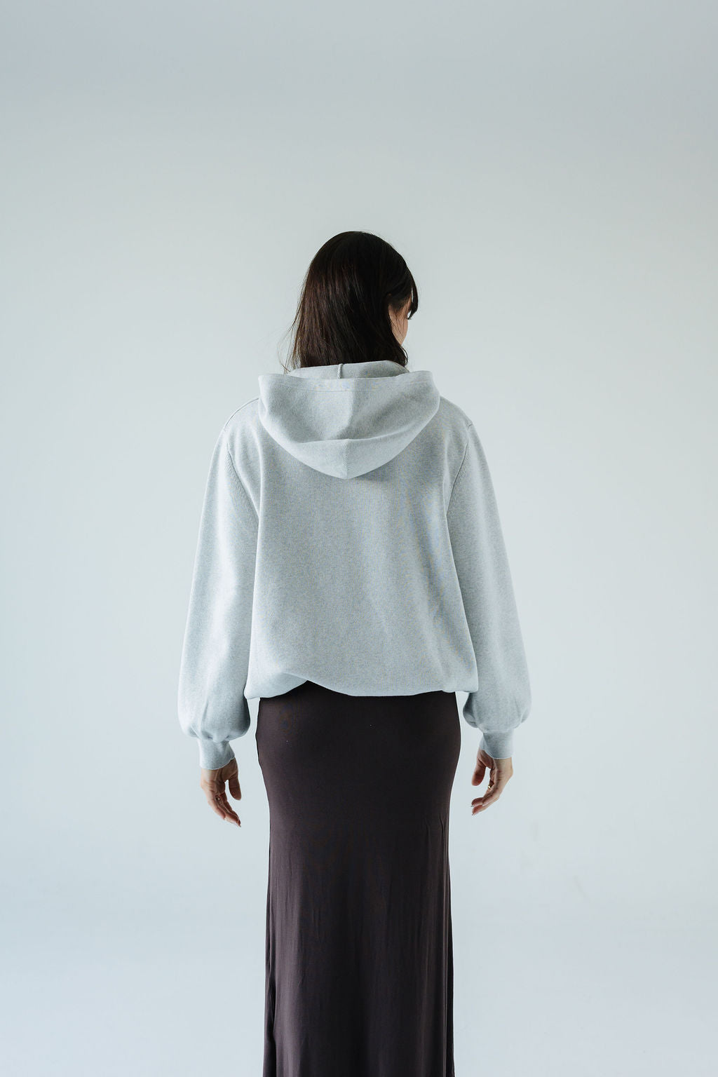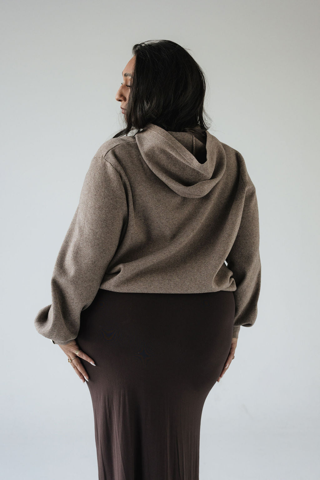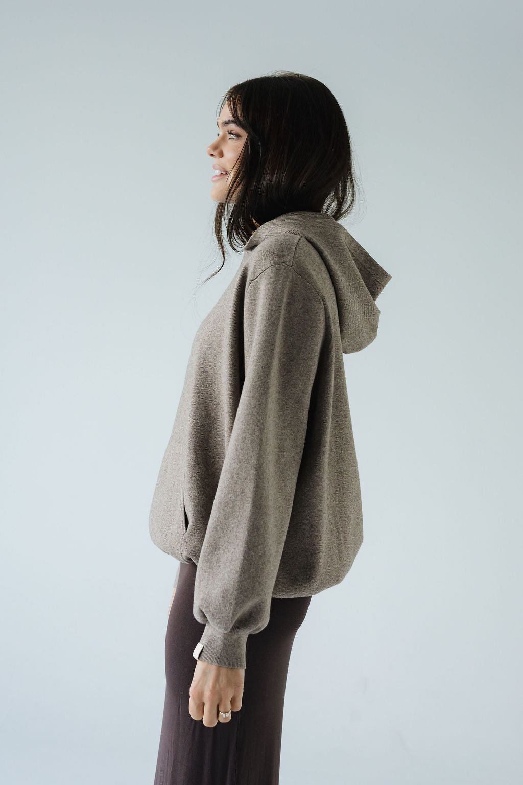 Máney er prjónuð hettupeysa þar sem mikil áherlsa var lögð á fallegt klæðilegt snið. Hún er prjónuð úr 20% ull og 80% bómull sem gerir hala hlýja og endingargóða. Peysan kemur í tveimur litum ljós brúnu og ljós gráum.
