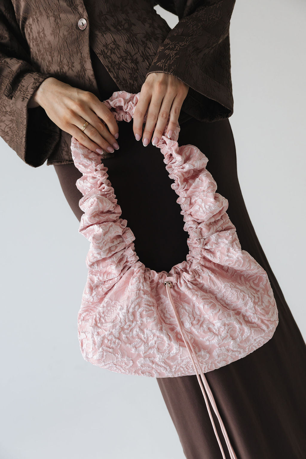 May taskan sameinar þægindi og stíl. Hver og einn getur auðveldlega stillt lengdina eftir eigin þörfum með böndum sitthvoru megin, hvort sem hún er borin á annarri öxlinni eða þvert yfir líkamann. Efnið er fallegt með blóma mynstri og hefur smá stífleika sem tryggir að taskan heldur sínu formi. Taskan er hönnuð með renndum vasa fyrir smærri hluti að innan og segul smellu til að loka töskunni.