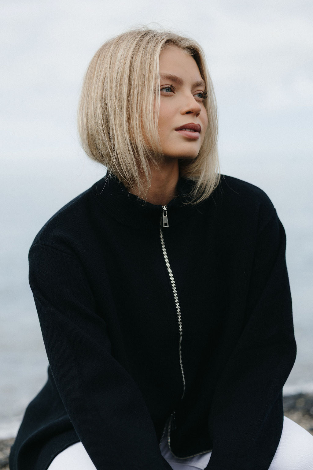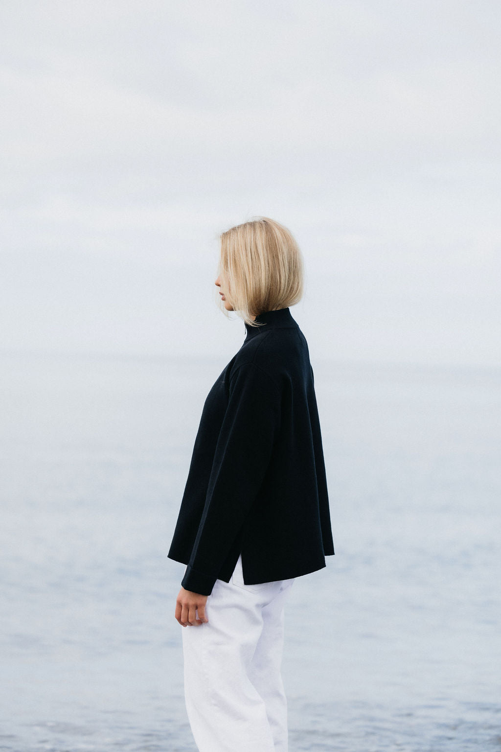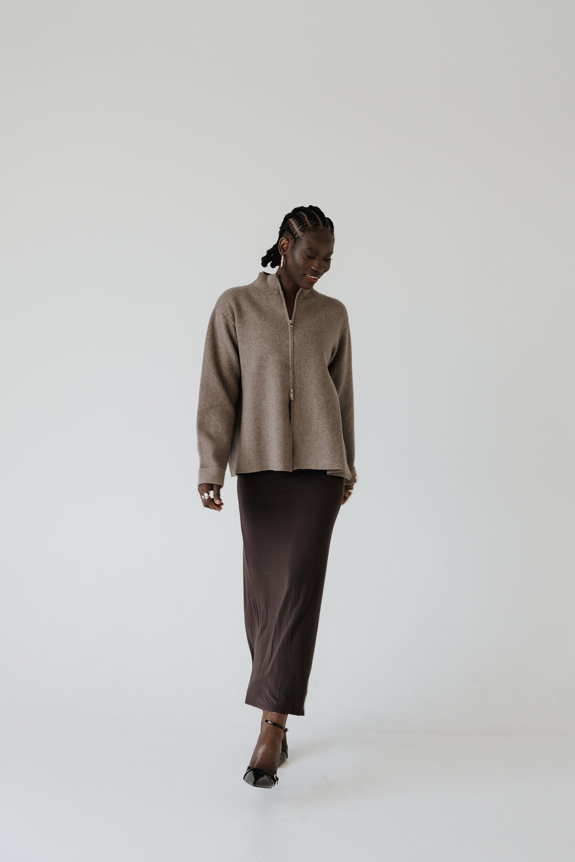 Þoka er hin fullkomna oversized prjónapeysa sem hægt er að vera í á góðum notalegum stundum heimavið og hentar vel fyrir íslenska sumarið. Hún er prjónuð úr 80% bómull og 20% ull sem gerir hana létta og endingargóða, hún er með tvöföldum rennilás, 10cm klauf á hliðinni og kraga sem sem nær uppfyrir háls. Peysan er ætluð öllum kynjum og kemur í tveimur litum, ljósbrúnu og ljósgráu.