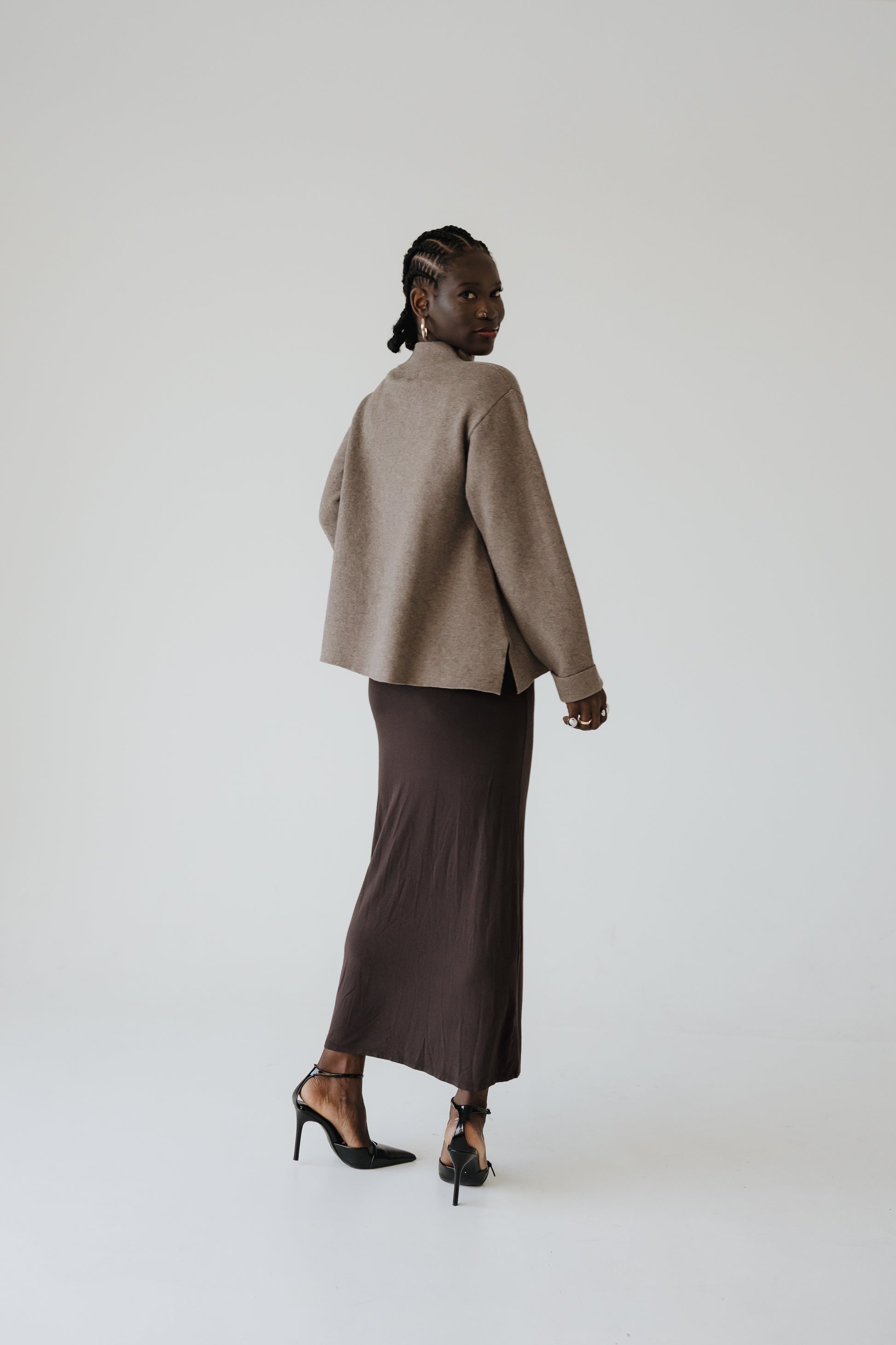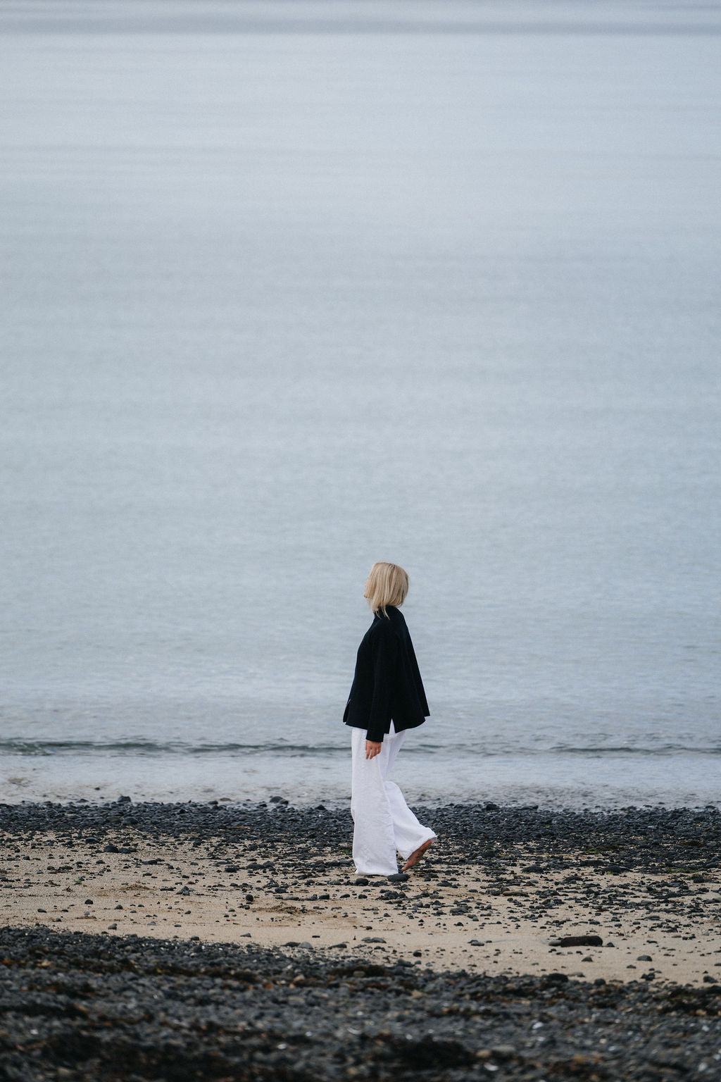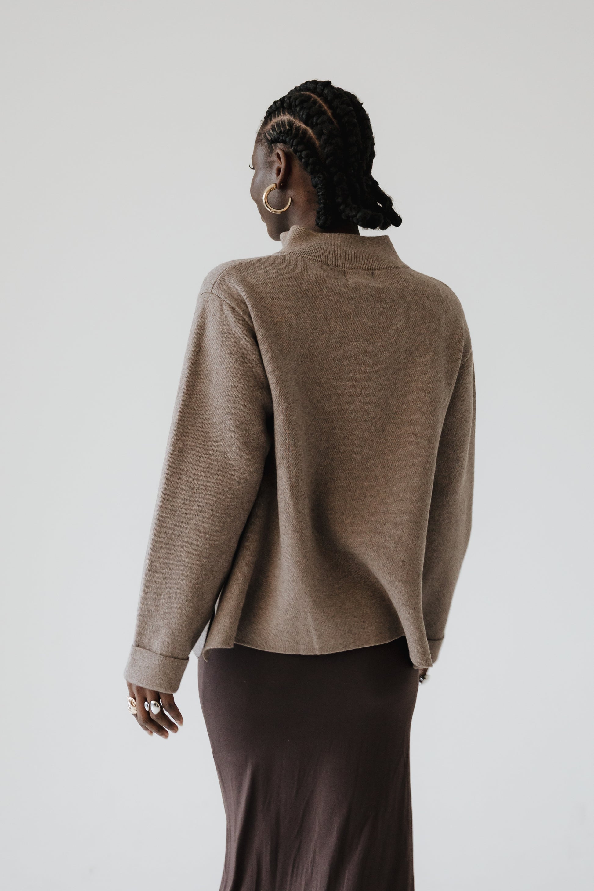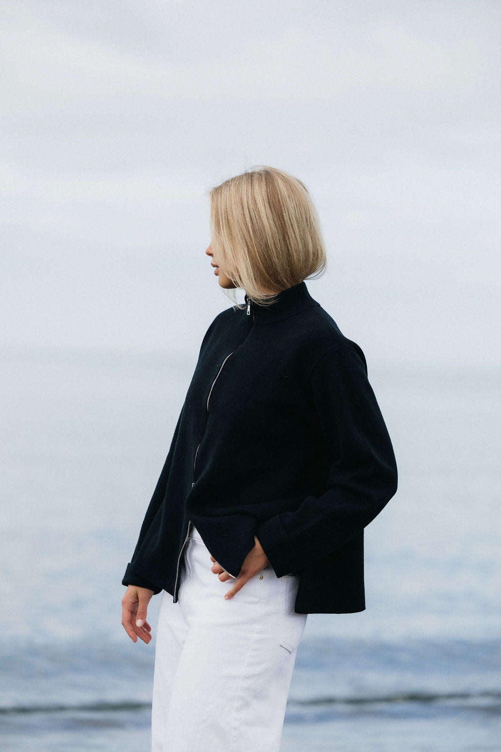 Þoka er hin fullkomna oversized prjónapeysa sem hægt er að vera í á góðum notalegum stundum heimavið og hentar vel fyrir íslenska sumarið. Hún er prjónuð úr 80% bómull og 20% ull sem gerir hana létta og endingargóða, hún er með tvöföldum rennilás, 10cm klauf á hliðinni og kraga sem sem nær uppfyrir háls. Peysan er ætluð öllum kynjum og kemur í tveimur litum, ljósbrúnu og ljósgráu.