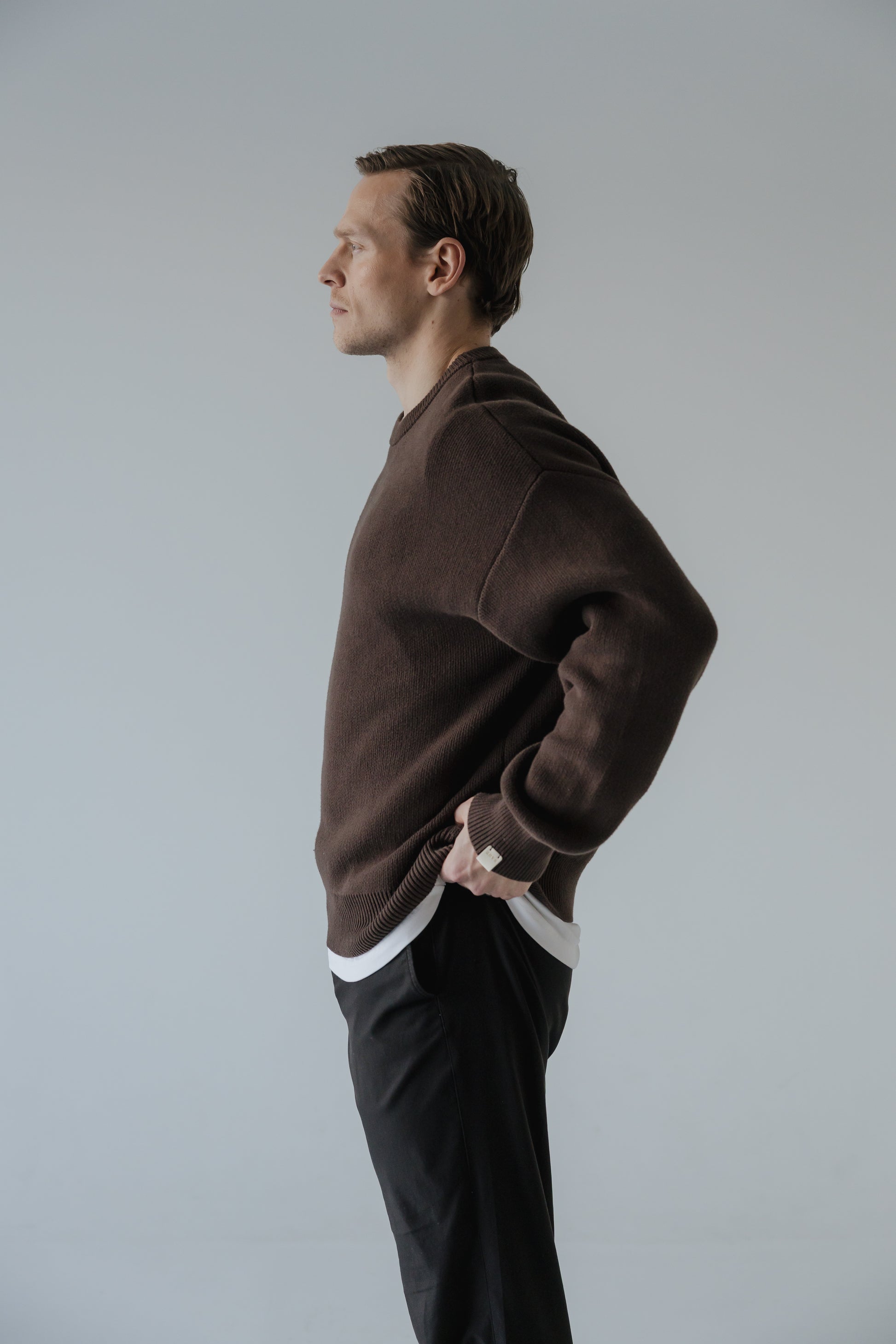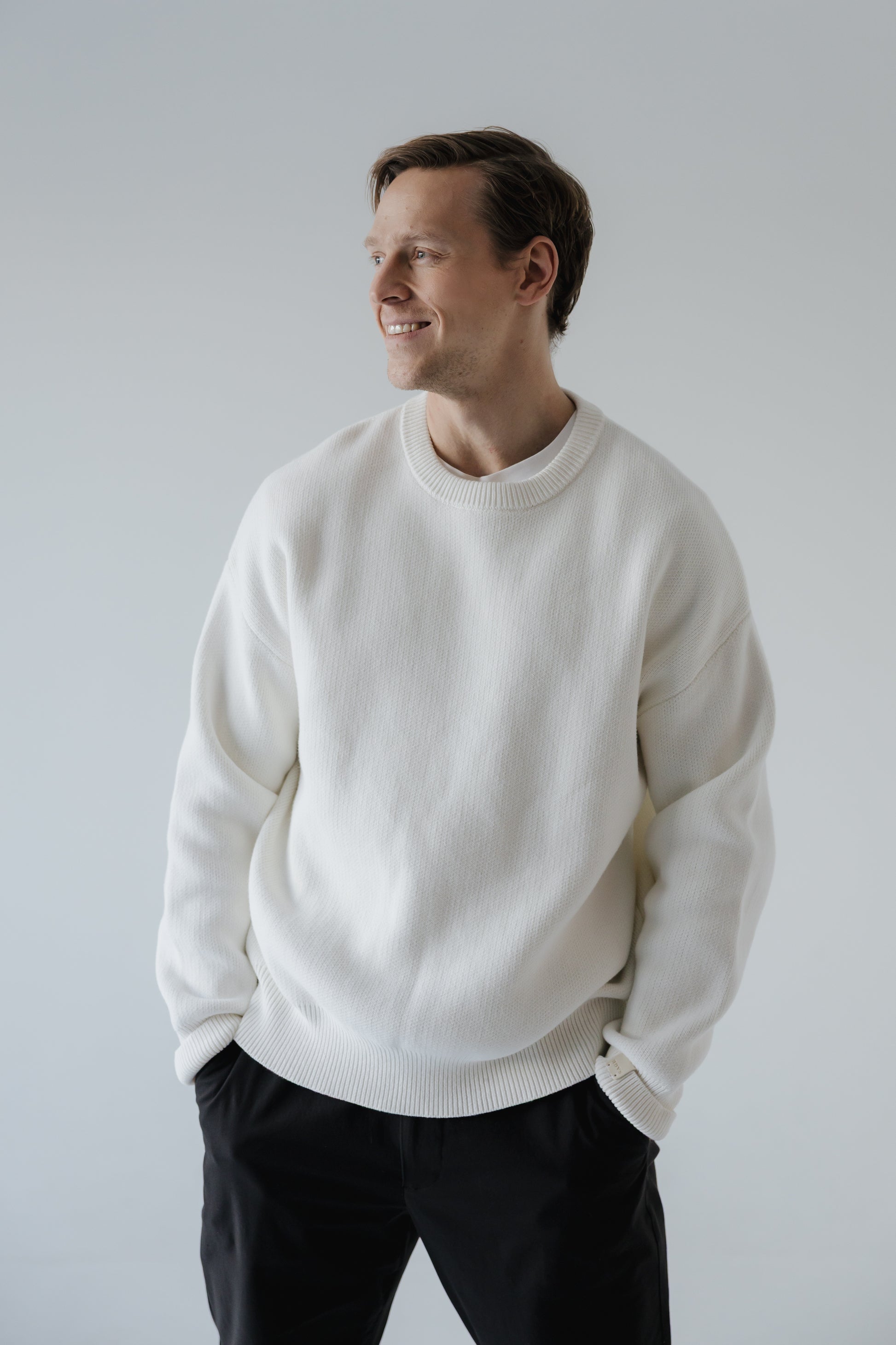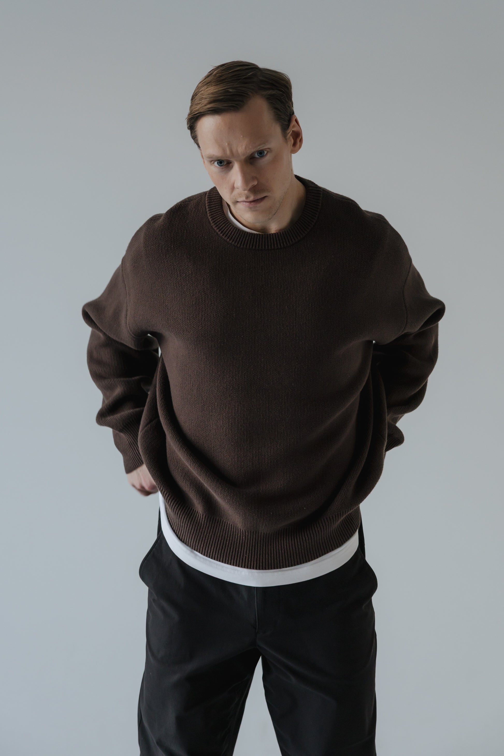 Þyrnir er oversized crewneck peysa sem er ætluð fyrir öll kyn. Hún er prjónuð úr 100% bómull og er einstaklega falleg. Peysan kemur í tveimur litum dökkbrúnum og hvítu.