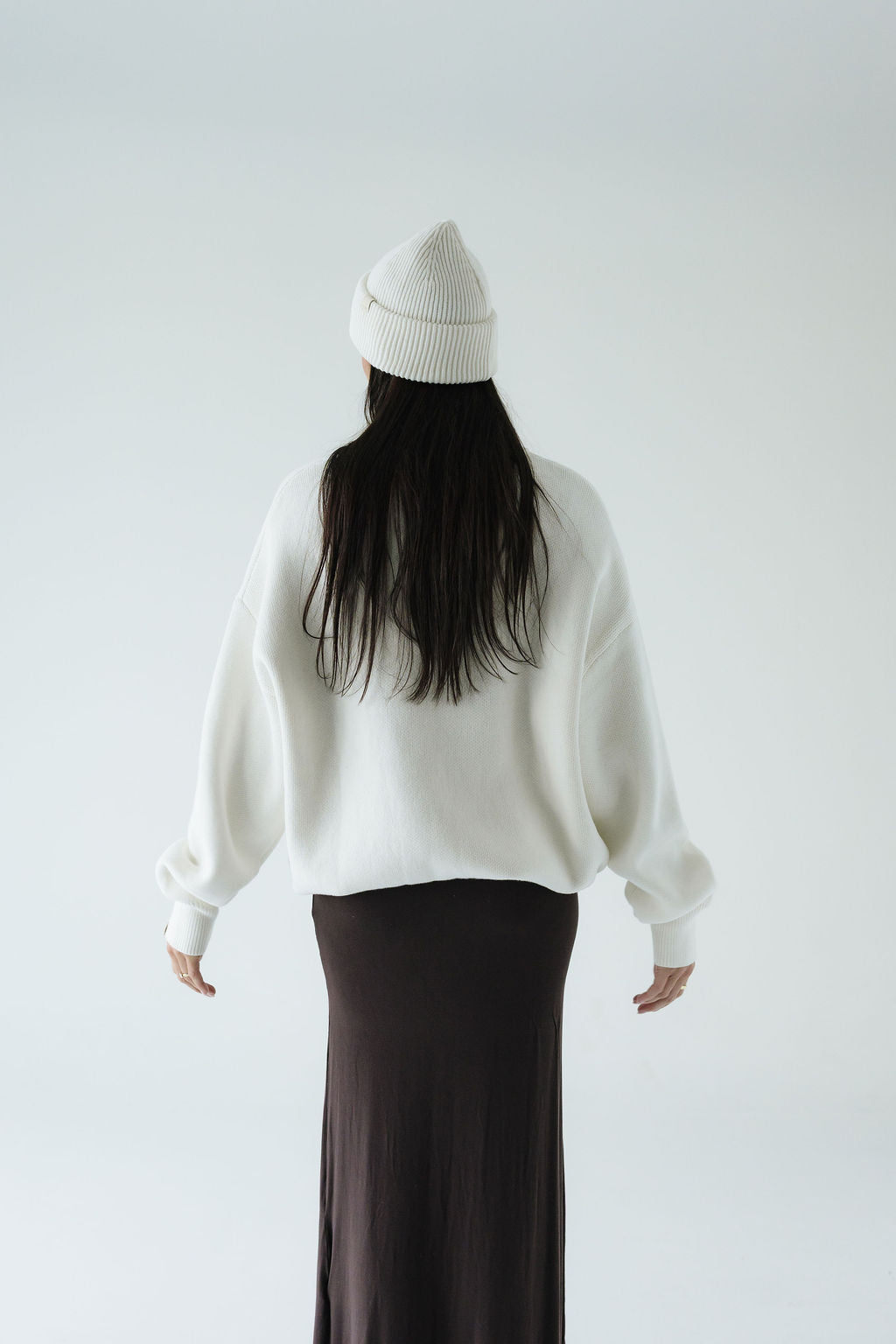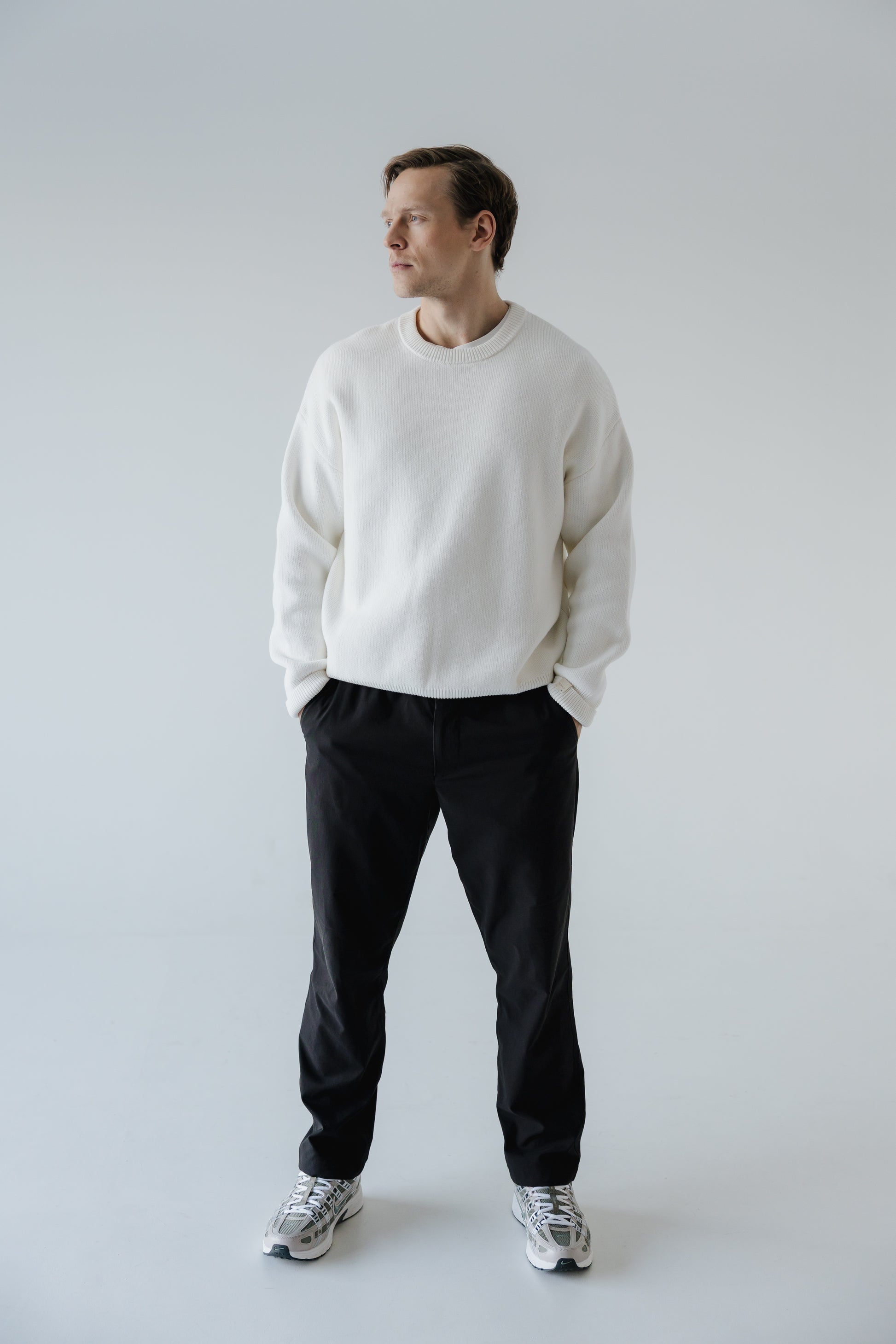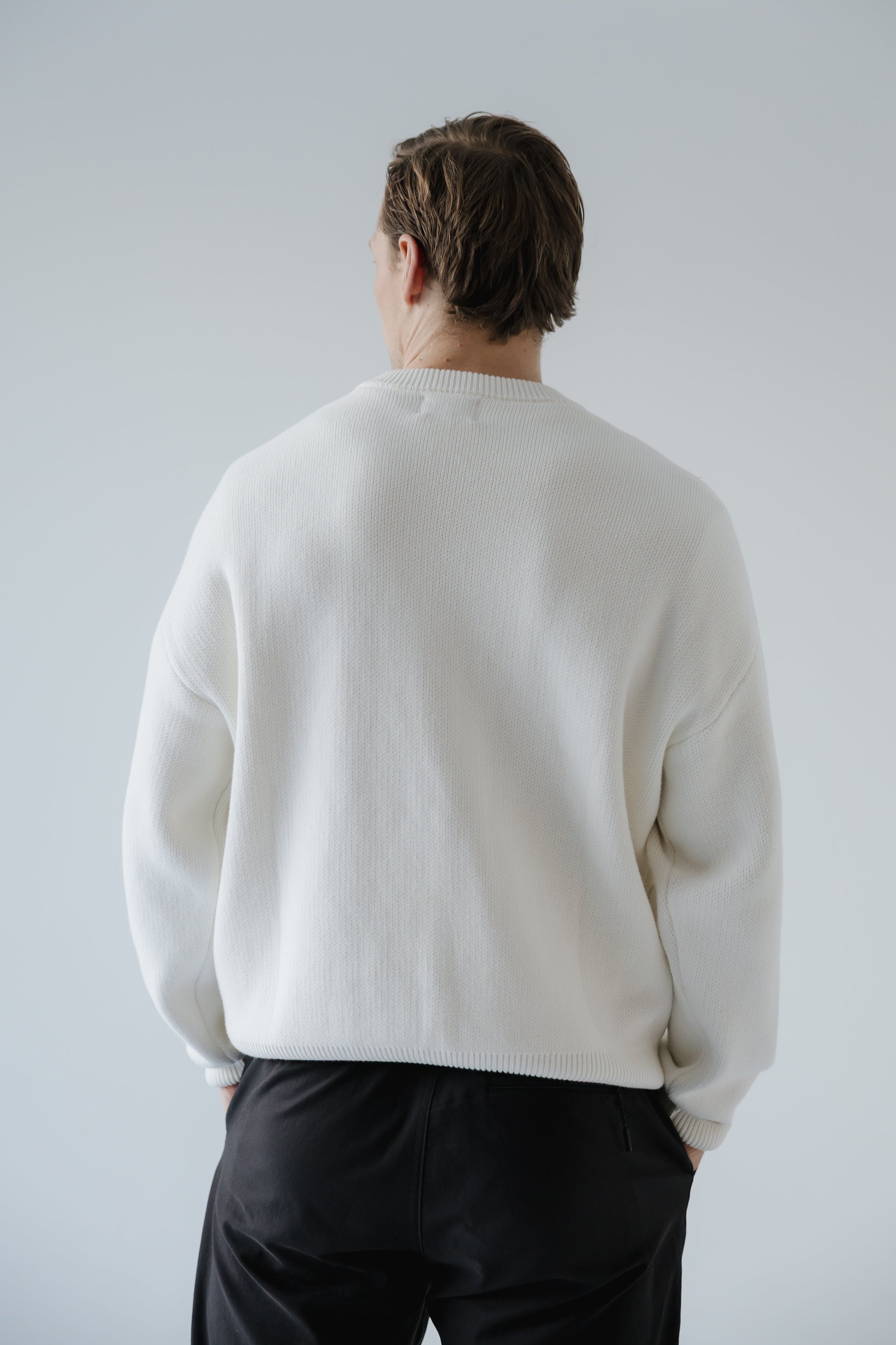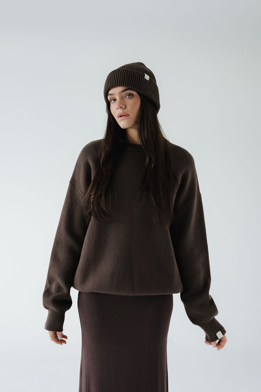 Þyrnir er oversized crewneck peysa sem er ætluð fyrir öll kyn. Hún er prjónuð úr 100% bómull og er einstaklega falleg. Peysan kemur í tveimur litum dökkbrúnum og hvítu.